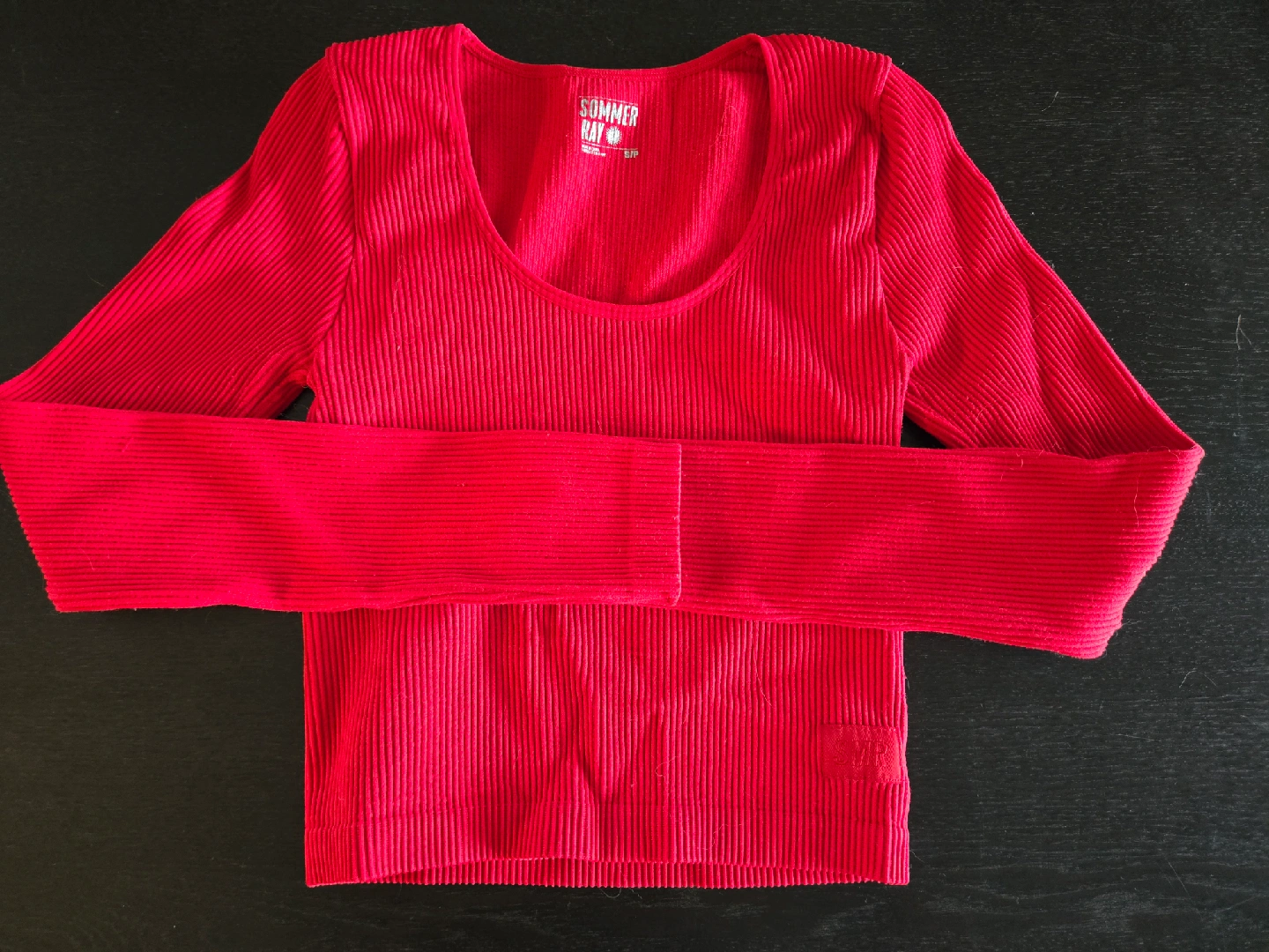 White knit sweater and red top fit a size small. White batwing sweater is a one size. $5 each