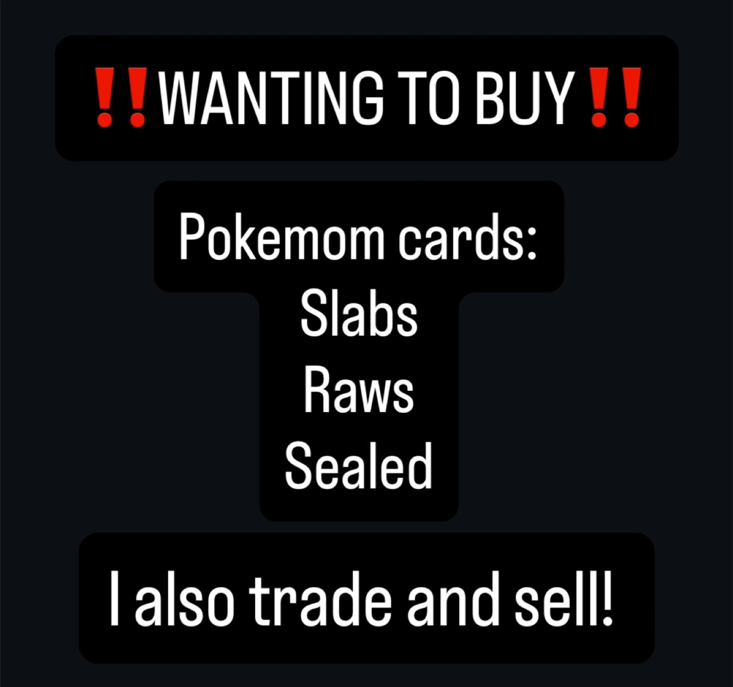 HomeBuy and sellLooking to buy Pokemon CardsAydenBrentwood18117 reviewsLooking to buy Pokemon CardsWanted · $1,234Looking to buy Pokemon cards in slabs, raws and sealed Hmu for more info!Where to meet3 chats·0 favourites·25 viewsGet the Karrot app to chatOther listings by AydenShow allLooking to buy Pokemon Cards$1,234BrentwoodWTS at market Pokémon Trading Card singles$340BrentwoodHP Prime Graphing Calculator$135BrentwoodAssorted Jewellery Bundle$4BrentwoodGold action figure robot. Bandai model kit hg$15BrentwoodMarvel Action Figures Lot$10Brentwood