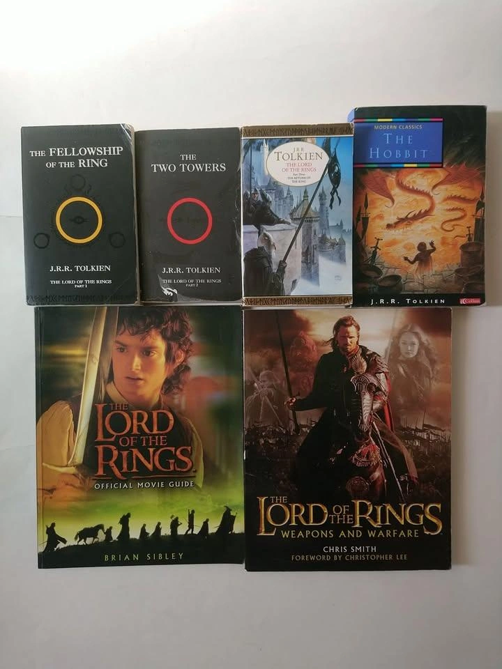 Location: Yonge and College /downtown Toronto Cash only; prices are firm. J.R.R. Tolkien: - The Fellowship of the Ring - $3 - The Two Towers - $3 - The Return of the King - $4 - The Hobbit - $4 Also: - The Lord of the Rings: Official Movie Guide - Brian Sibley - $4 - The Lord of the Rings: Weapons and Warfare - Chris Smith - $4 Feel free to check out my other book posts as well!