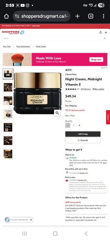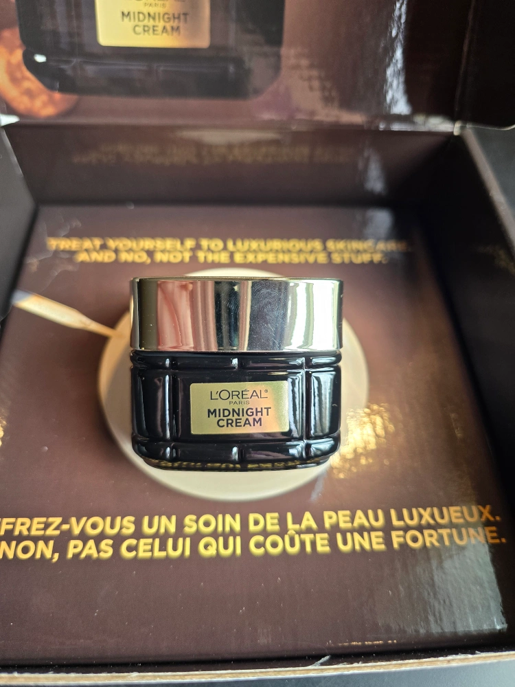 Selling a L'Oreal Paris Night Cream, Midnight Vitamin E. This cream is designed to smooth over your face and neck every morning and night after using serum or treatment. The lot number is 20Z302. Net weight is 1.7 oz (48g or 50ml). It originally retailed for $49.54 and comes with the box. brand new, never used pick up by garden city mall