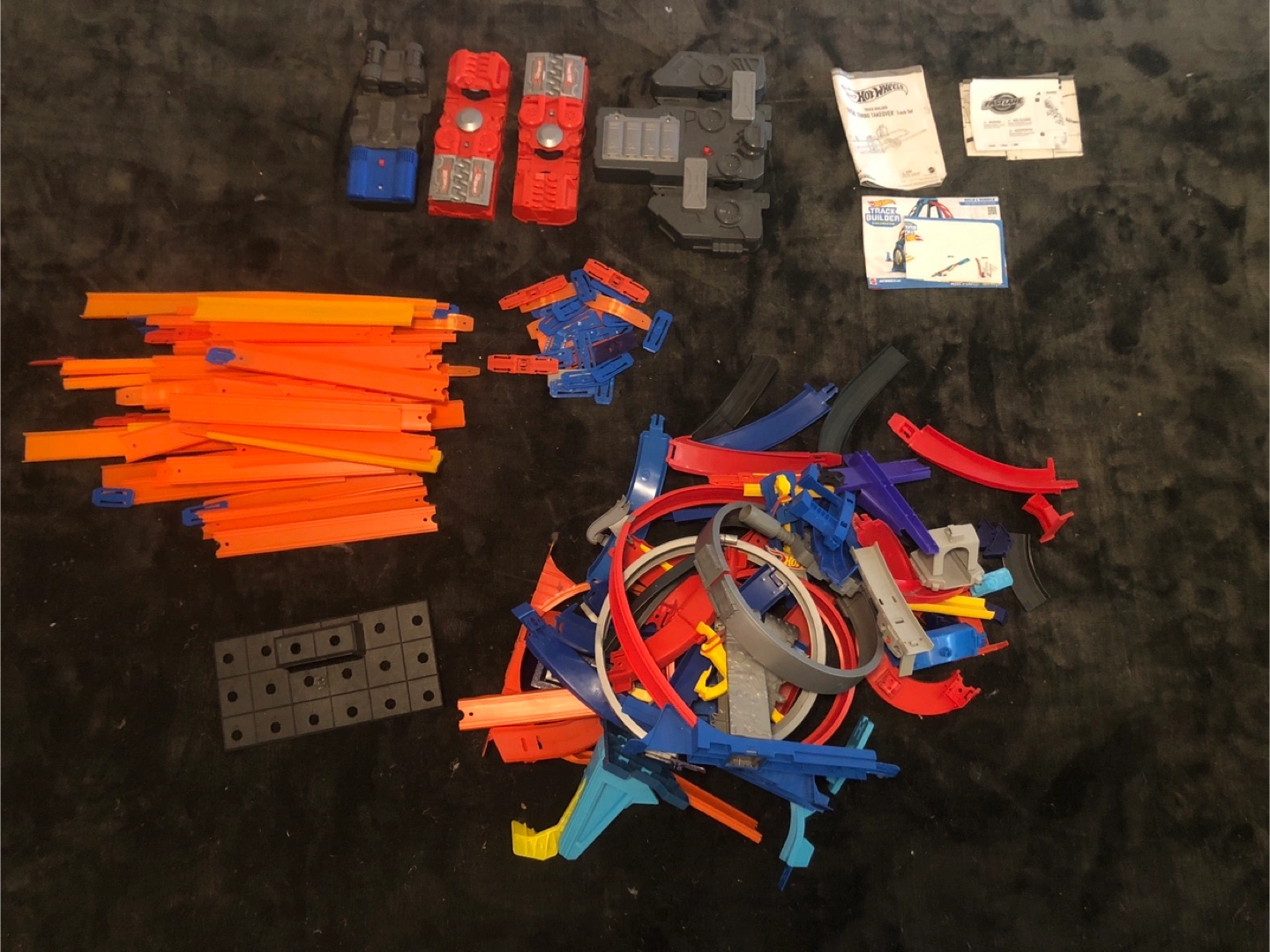 Lots of Hot wheels supplies & hot wheels track builder unlimited set. Includes: •Various track pieces & connectors •4x motors for hot wheels track •hot wheels track builder unlimited set •Instructions for various buildable tracks