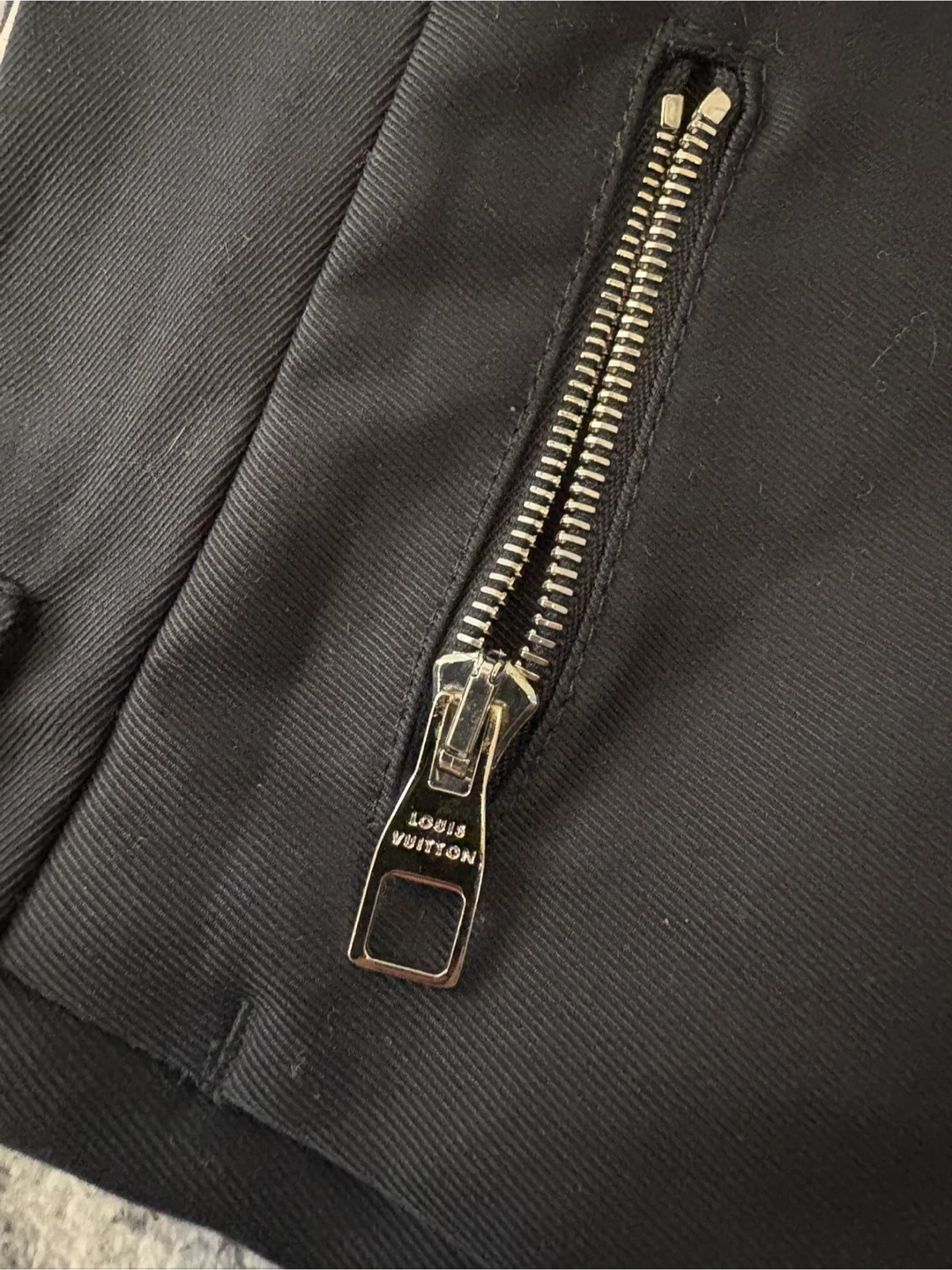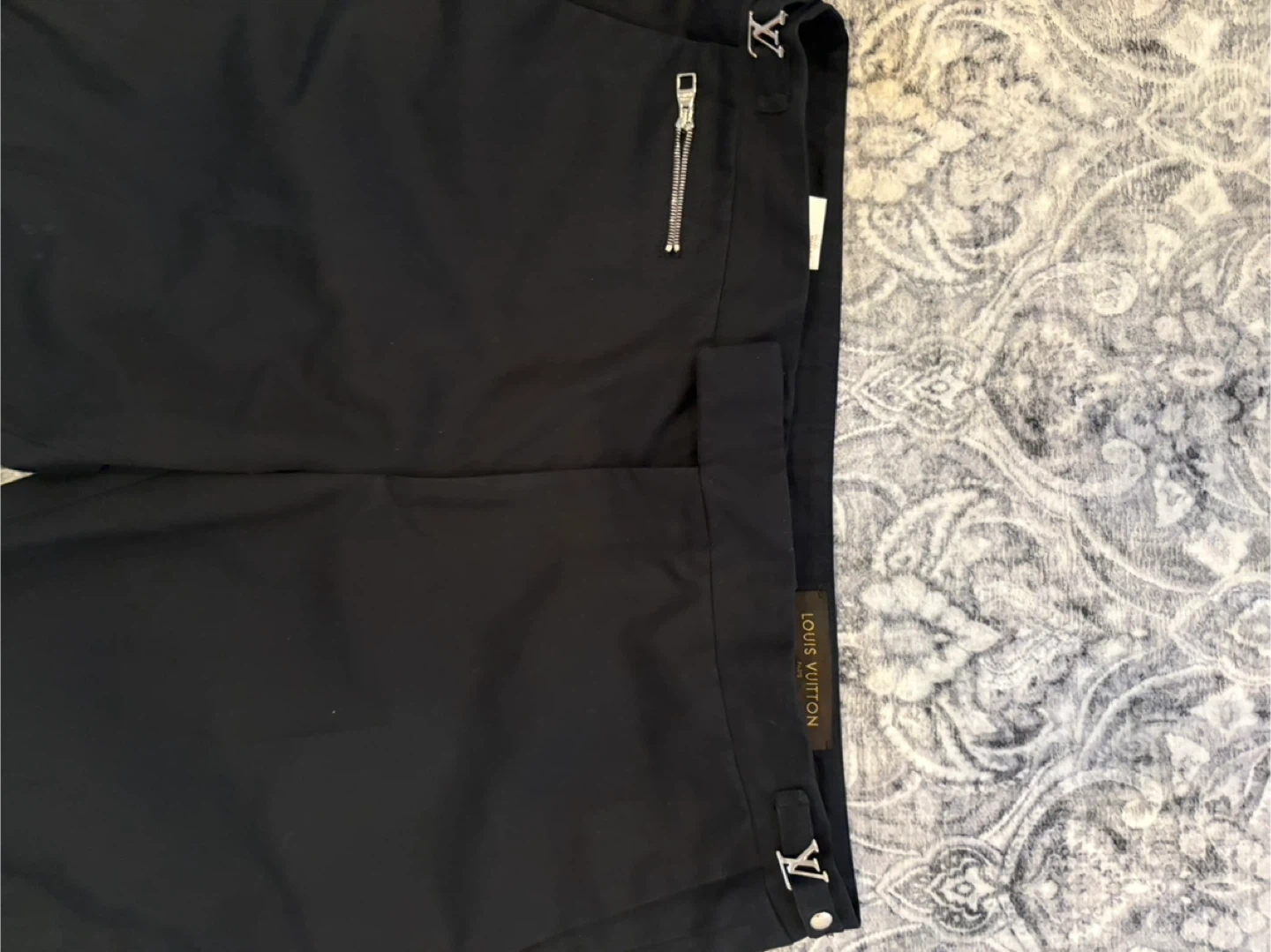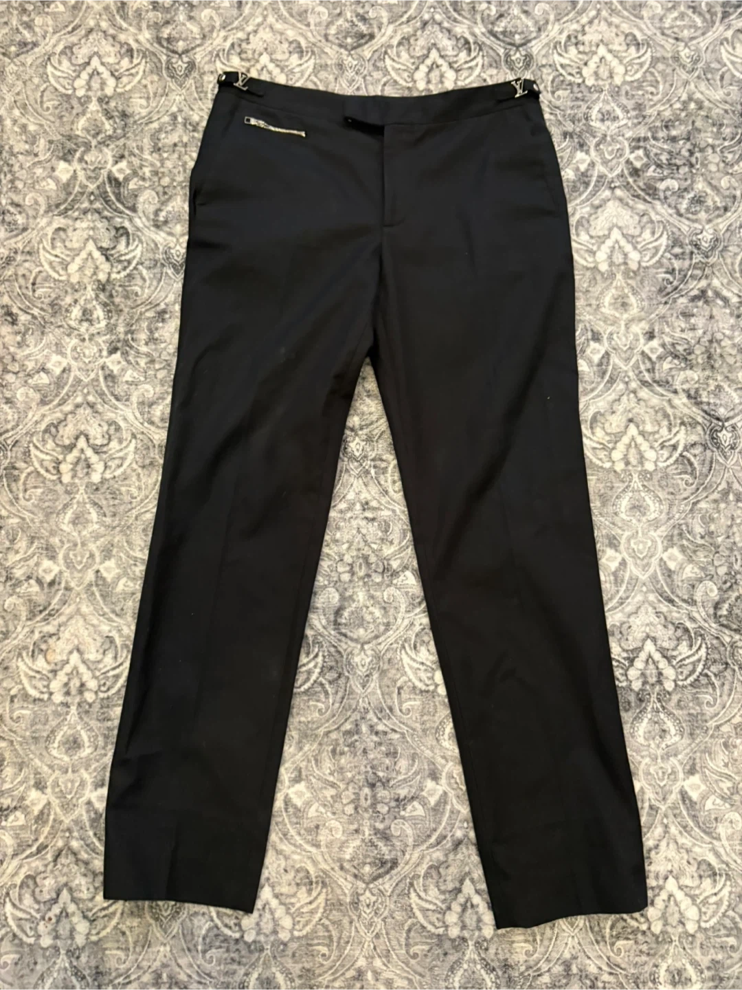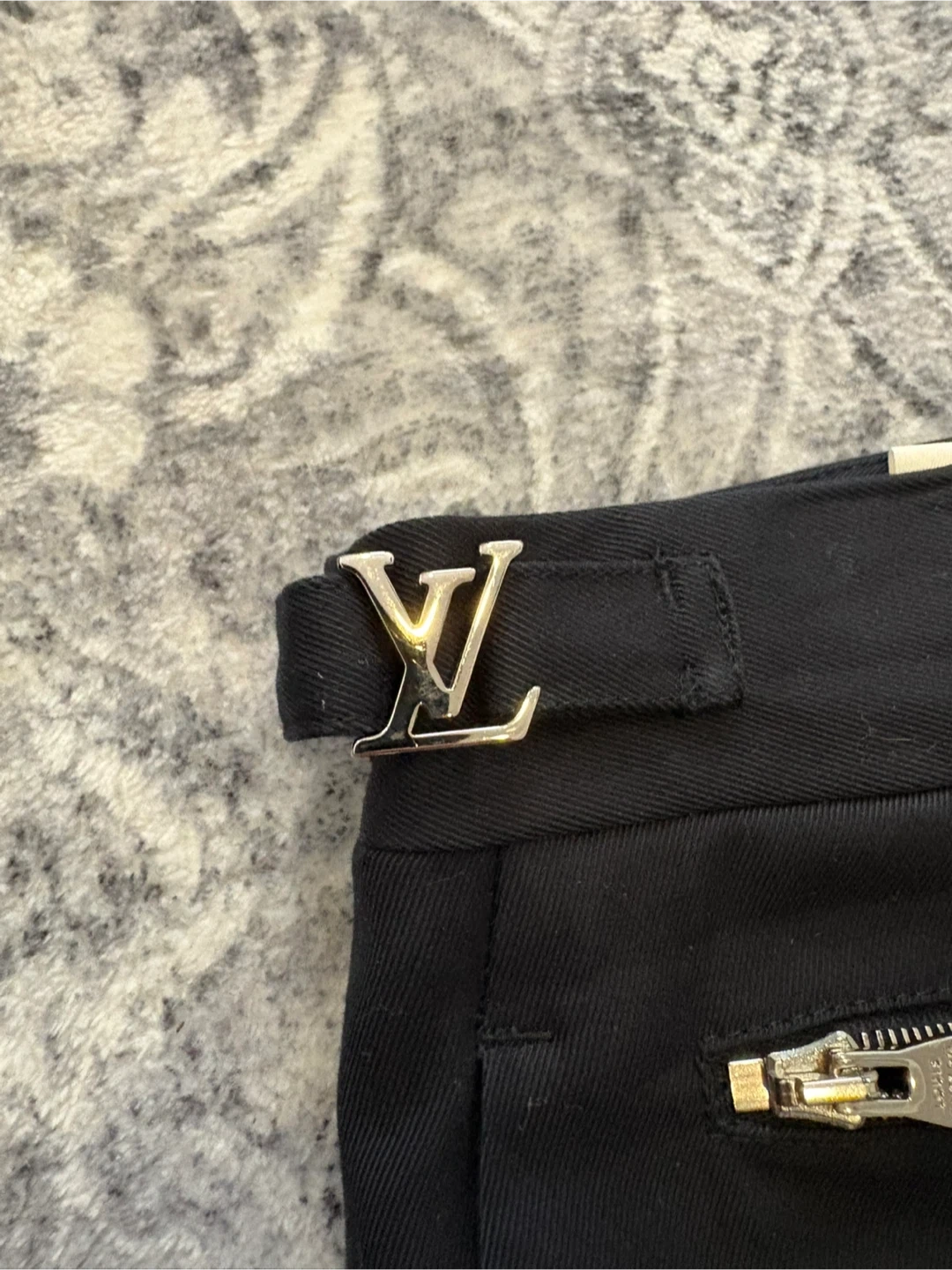 Selling a pair of Louis Vuitton black pants in size 44. They are in great condition and feature the iconic LV logo on the belt loops. Perfect for adding a touch of luxury to your wardrobe!