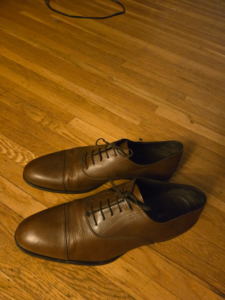 Selling a pair of Louis Vuitton dress shoes in brown leather. They are a size 11. Please see photos for condition.