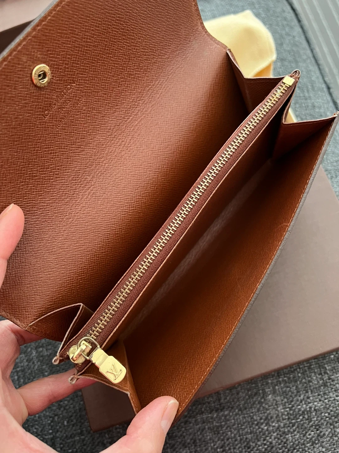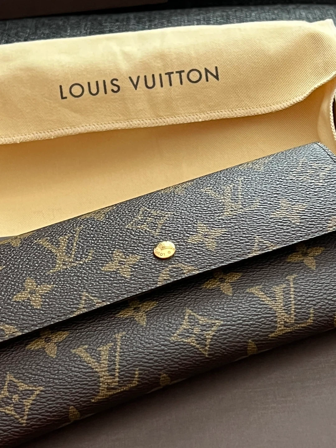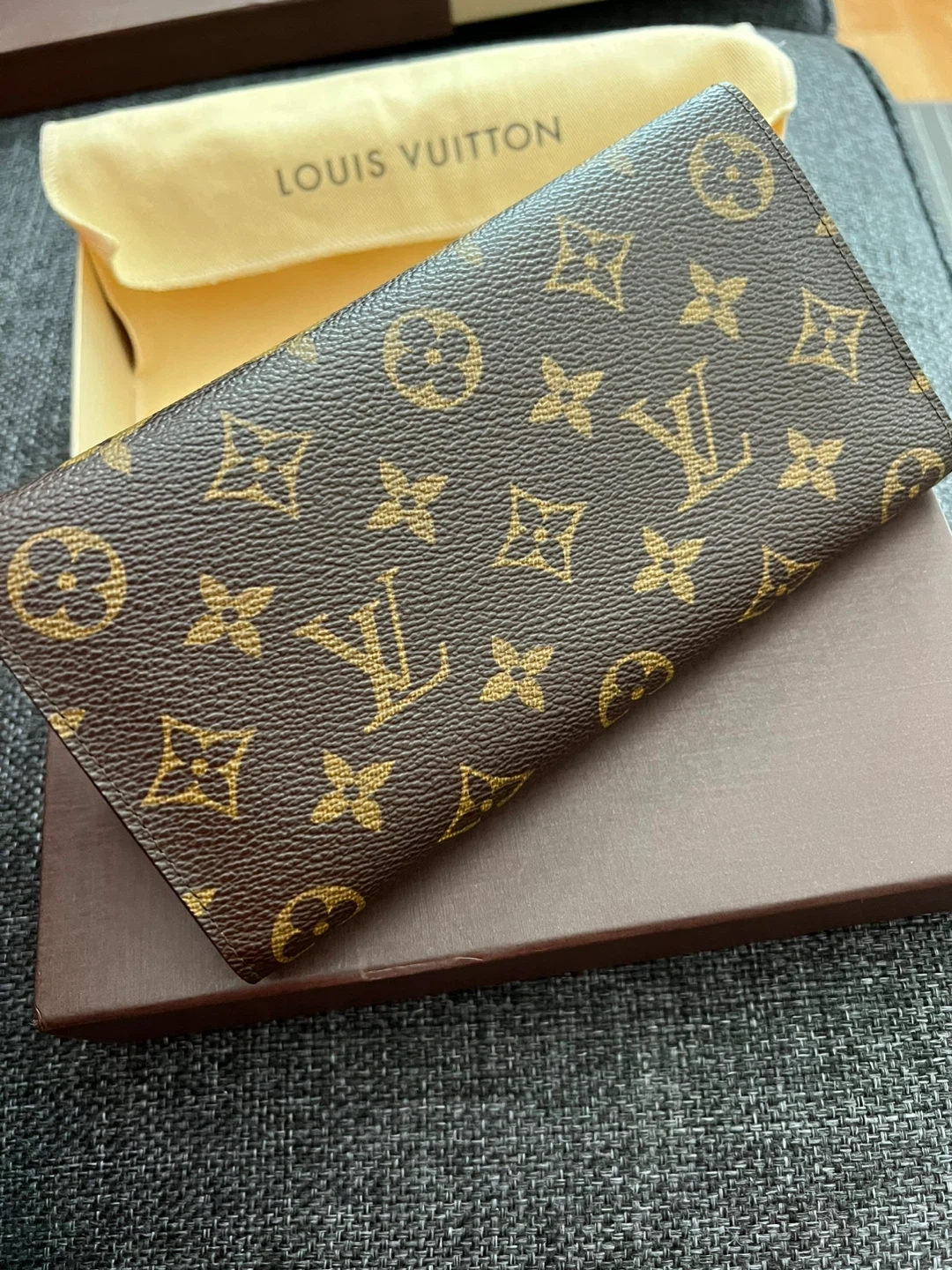 Selling a Louis Vuitton wallet in good condition. It features the classic monogram design on monogram leather. Comes with the original box and dust bag!
