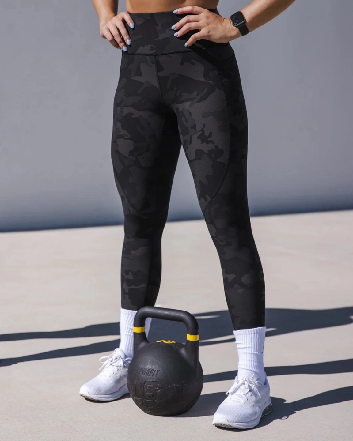 Selling a pair of Lululemon Align leggings in a black camo pattern! They are a size 0.