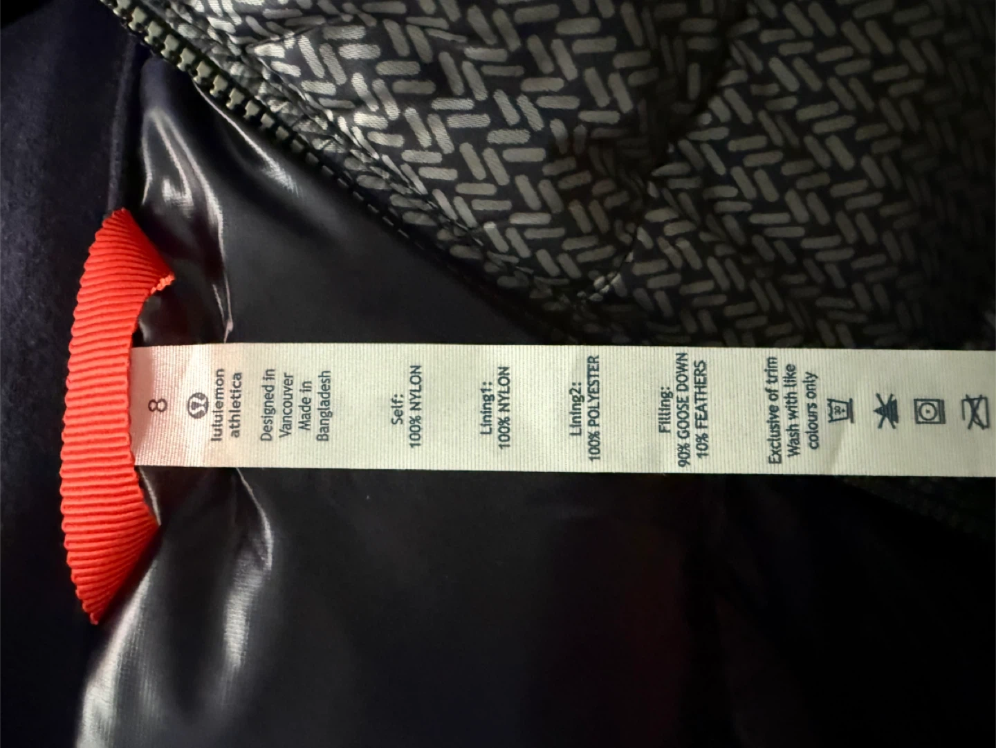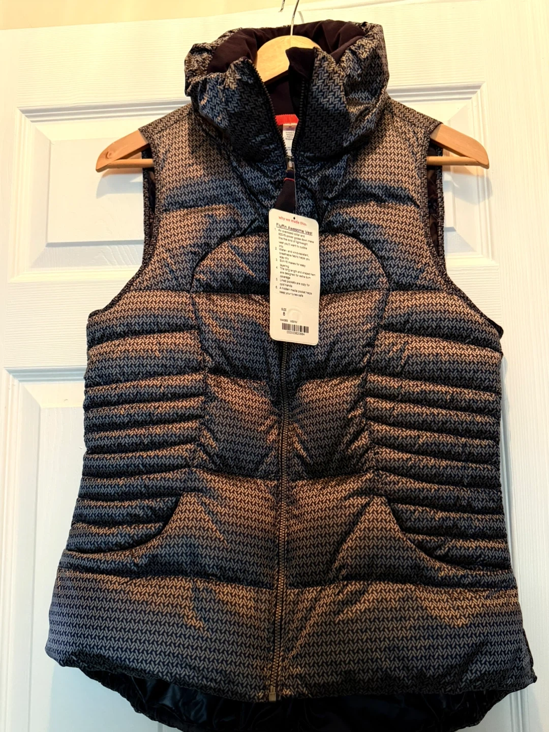 This Lululemon Athletica down vest is in great condition and ready for a new home! It's a size 8 and made with high-quality materials. - Self: 100% nylon - Lining 1: 100% nylon - Lining 2: 100% polyester - Filler: 90% goose down, 10% feathers