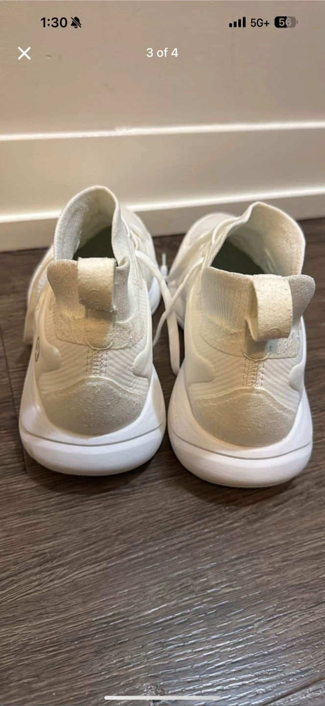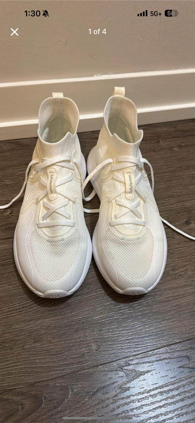 Selling a pair of Lululemon Blissfeel running shoes in great condition! They are a women's size 8.5. These shoes are super comfortable and perfect for running or everyday wear. The colour is a lovely off-white/cream colour. Worn only a few times since they are too tight for me.