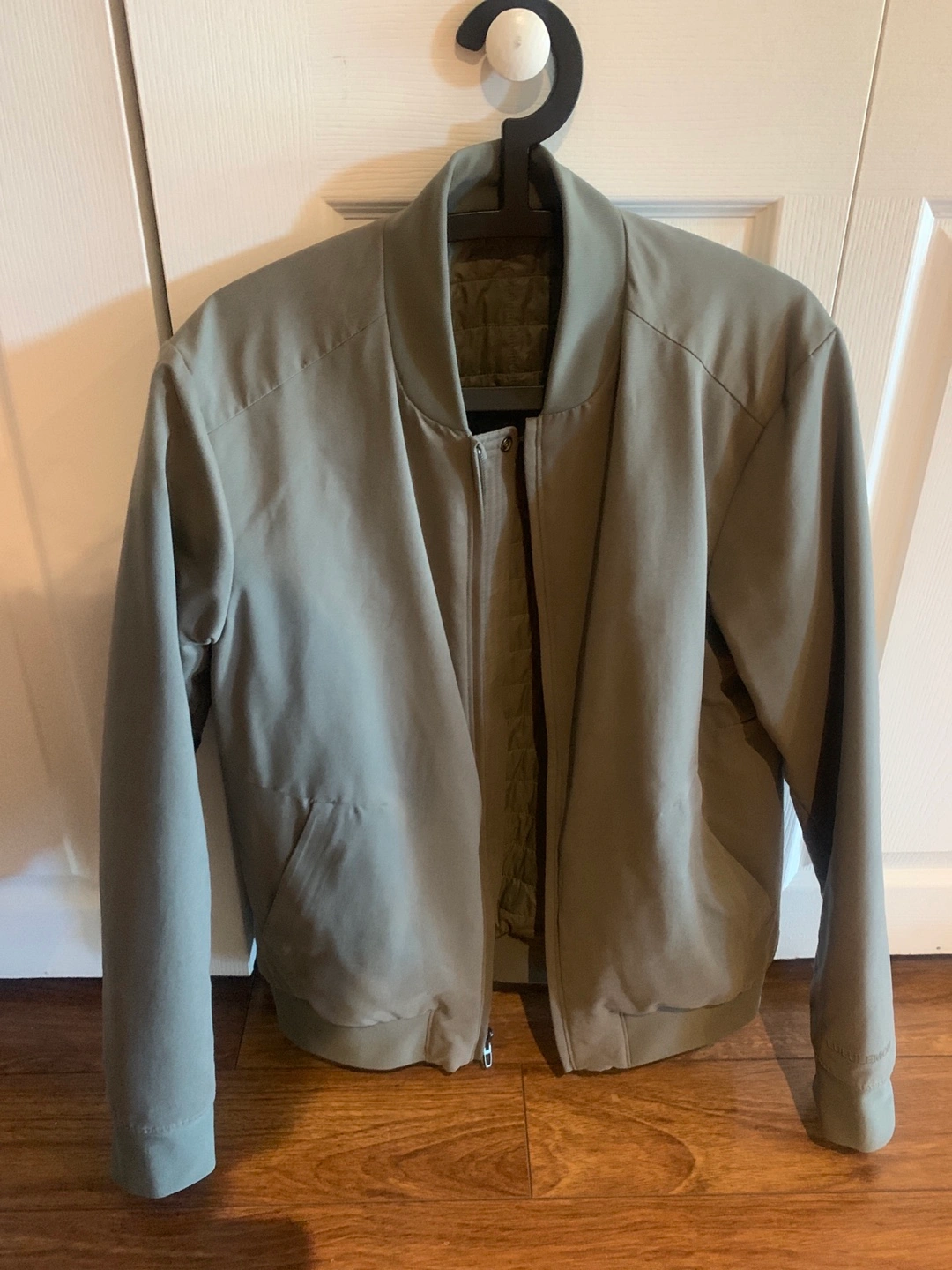 Selling a Lululemon bomber jacket in excellent condition. It's a stylish and comfortable jacket, perfect for layering. The jacket features a quilted lining and a sleek design. It's made with high-quality materials, ensuring durability and warmth. It was worn once and I unfortunately ripped the tag off but it’s pretty much new, it just sat in my closet for awhile.
