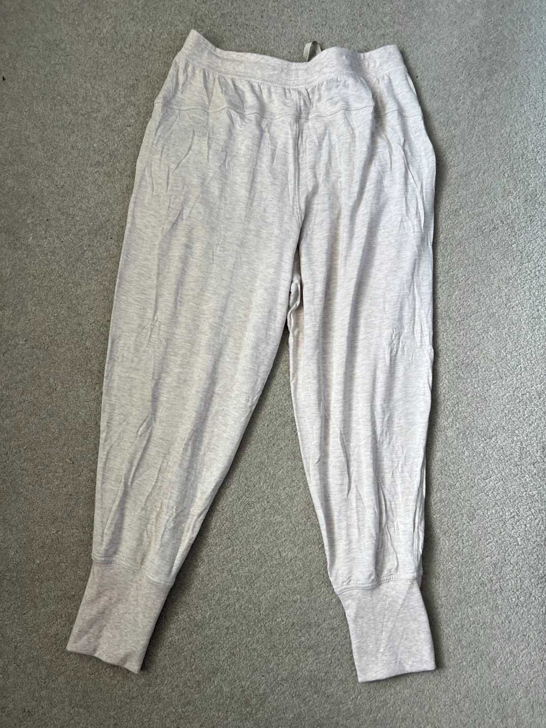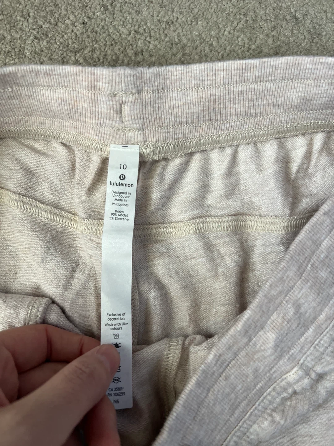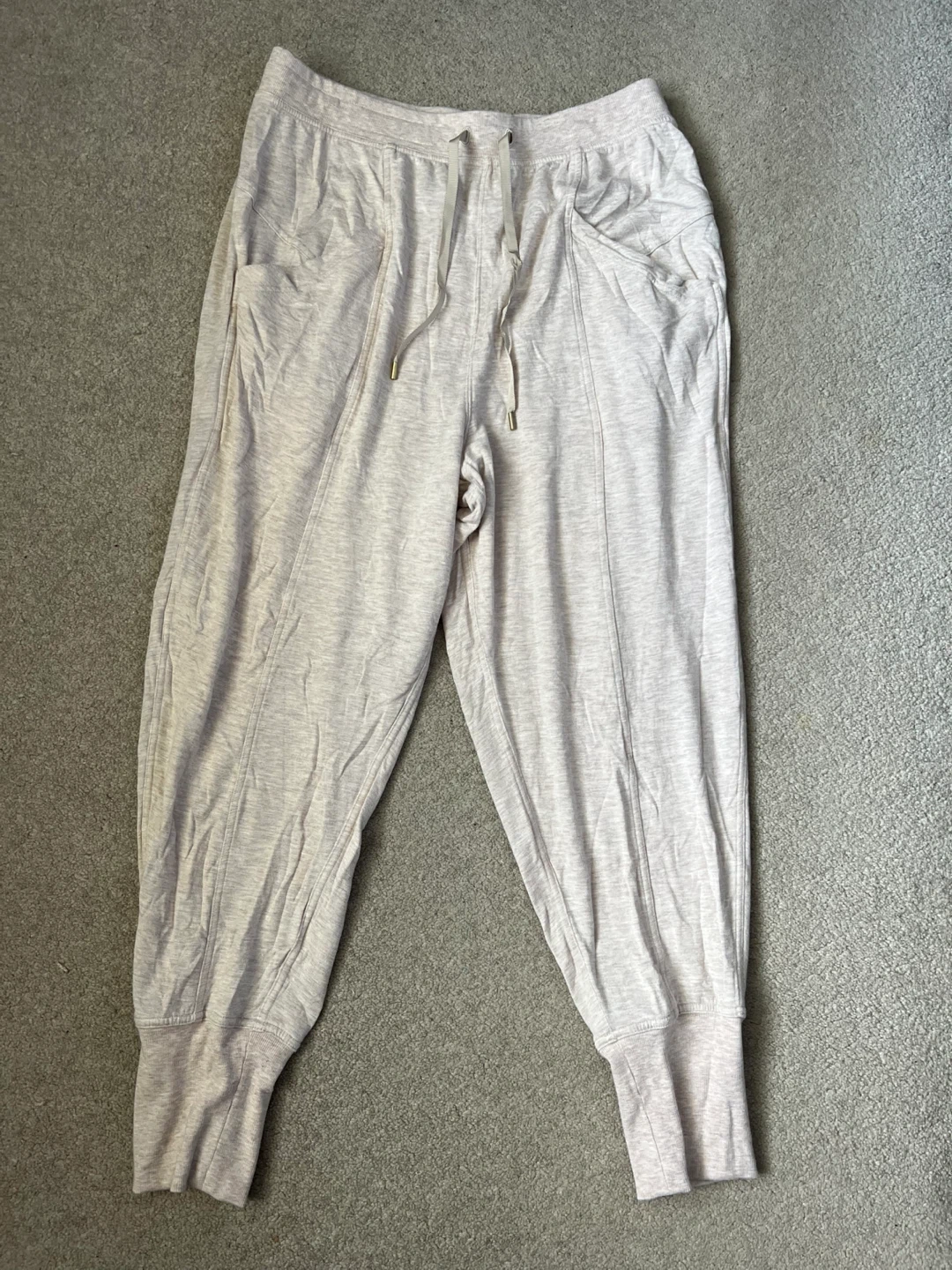 Selling a pair of Lululemon jogger pants in size 10. They are in great condition! The material is soft and comfortable, perfect for lounging or light activities. Made with a blend of 95% Lyocell and 5% Elastane