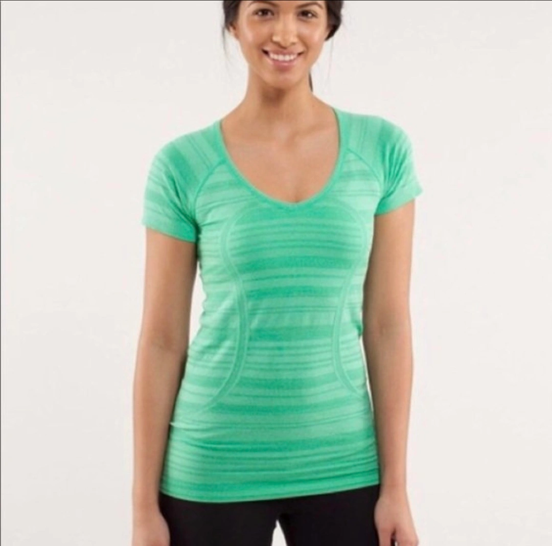 Selling a Lululemon Swiftly Tech Short Sleeve shirt in size 4! The colour is a lovely light green. It's in great condition and ready for a new home no pulls or catches