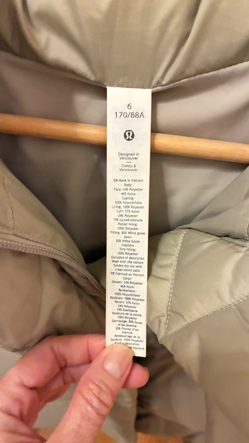 Cozy Lululemon Wunder Puff jacket in size 6! Retail at $348. Selling for $150. Pick up in the beaches.