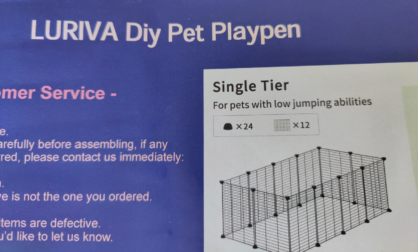 Selling a LURIVA Diy Pet Playpen in black, sized at 15"x12". It comes with 12 panels, perfect for pets with low jumping abilities. Great for creating a safe and contained play area for your furry friend!