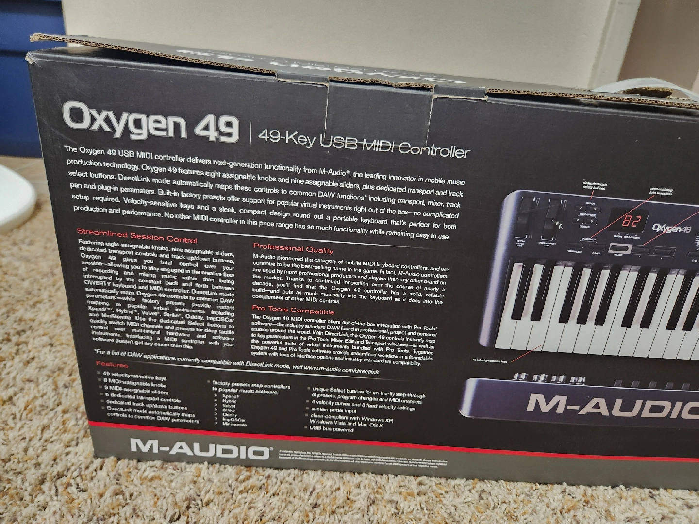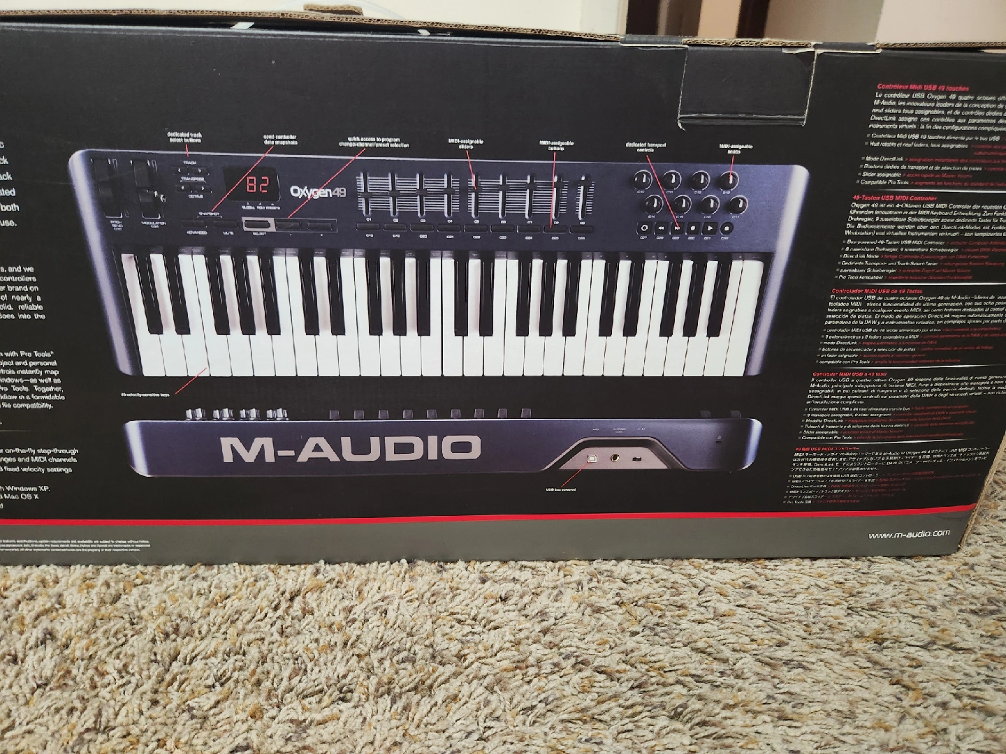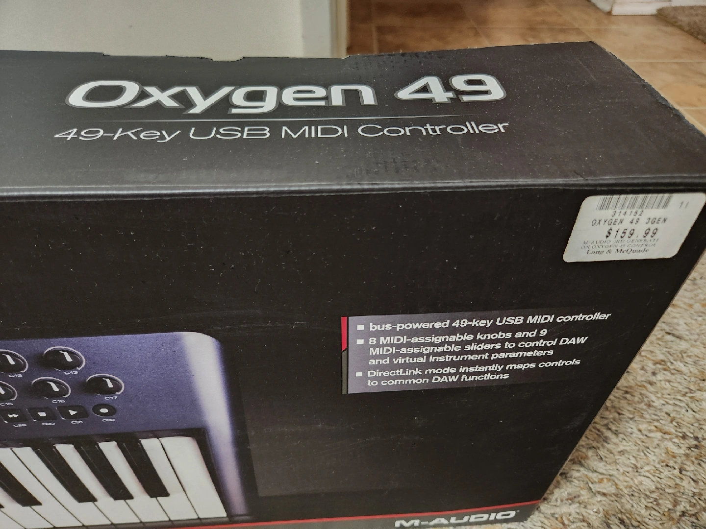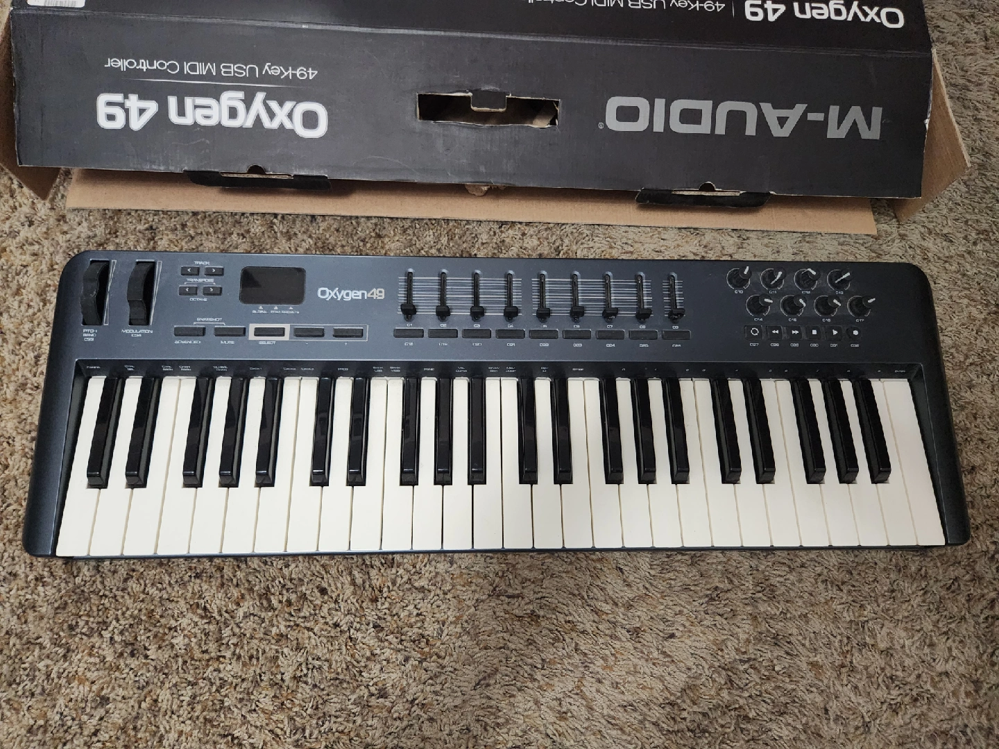 Selling an M-Audio Oxygen 49 49-Key USB MIDI Controller. It comes with its original box. Mint condition. Comes with quick start guide and 2 cd's that came with it. Cash Only. Pick-up Only. Price firm.
