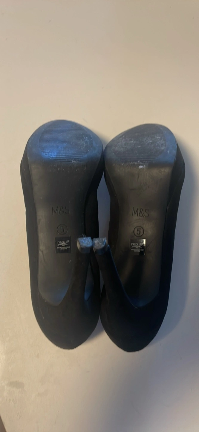 Selling a pair of black heels from M&S in size 5. They're in good condition and ready for a new home!