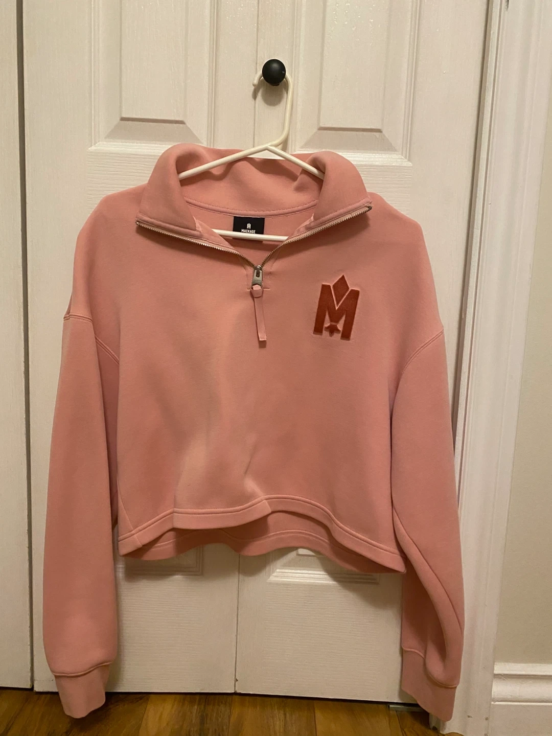 This is a Mackage half-zip cropped sweatshirt in a size small! It's a cute, sporty piece with the classic Mackage logo, perfect for layering or wearing on its own. This item is in great condition. I'm hoping it finds a new home where it will be loved and worn often! * Size: XXS * Colour: Pink If the ad is still up, you bet your bottom dollar it's still available!