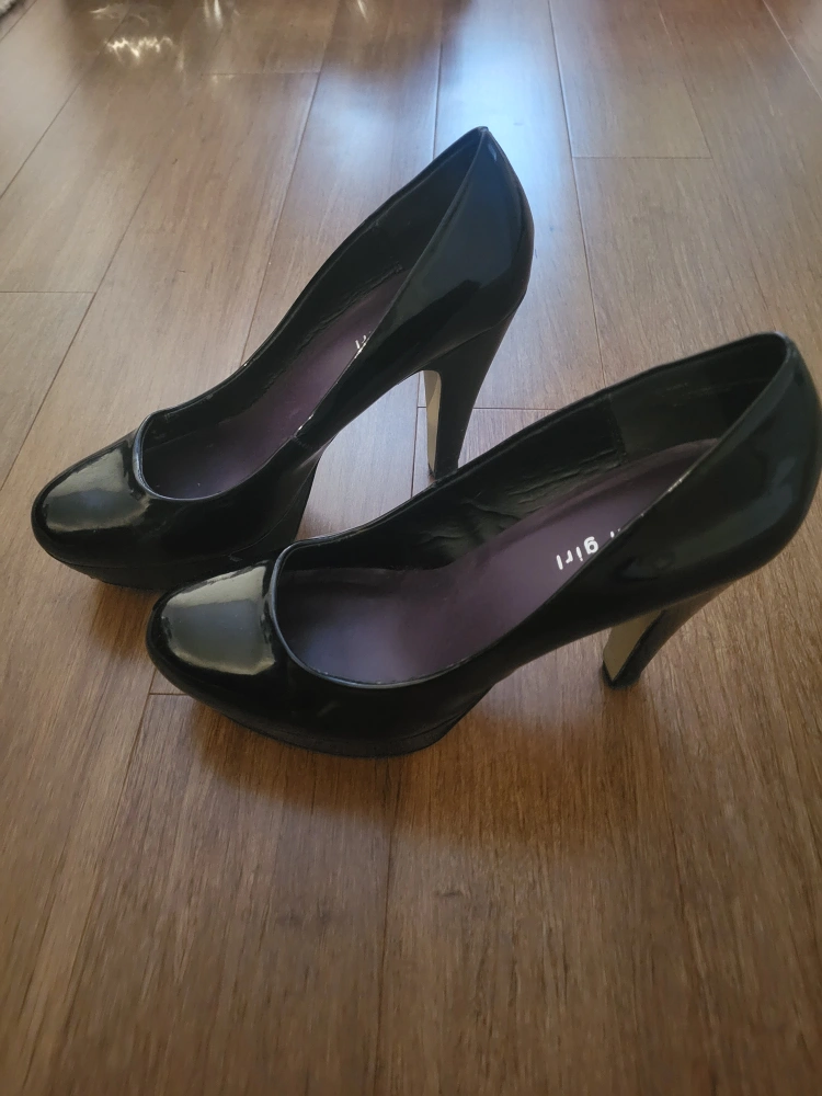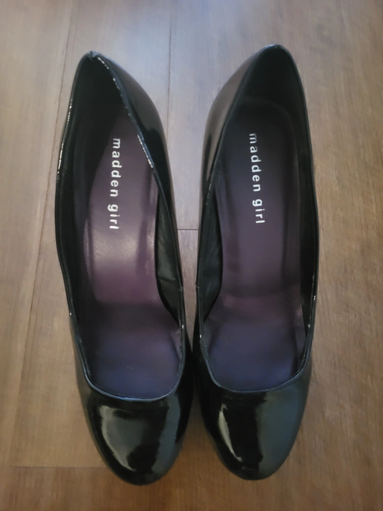 These are a pair of Madden Girl black patent heels in a women's size 9. They are in good condition and would be a great addition to your wardrobe!