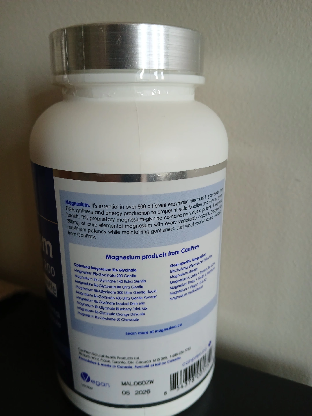 Brand new, unused (BNIP). Still sealed. Giftable. CanPrev Pure Magnesium Bisglycinate 200mg, 240 Vegan Capsules 240-Day Supply - Gentle on the Stomach - Magnesium Bis-glycinate Supplement - Elemental Chelated Complex for Relaxation and Muscle Comfort Paid $40 + tax for it at a health store