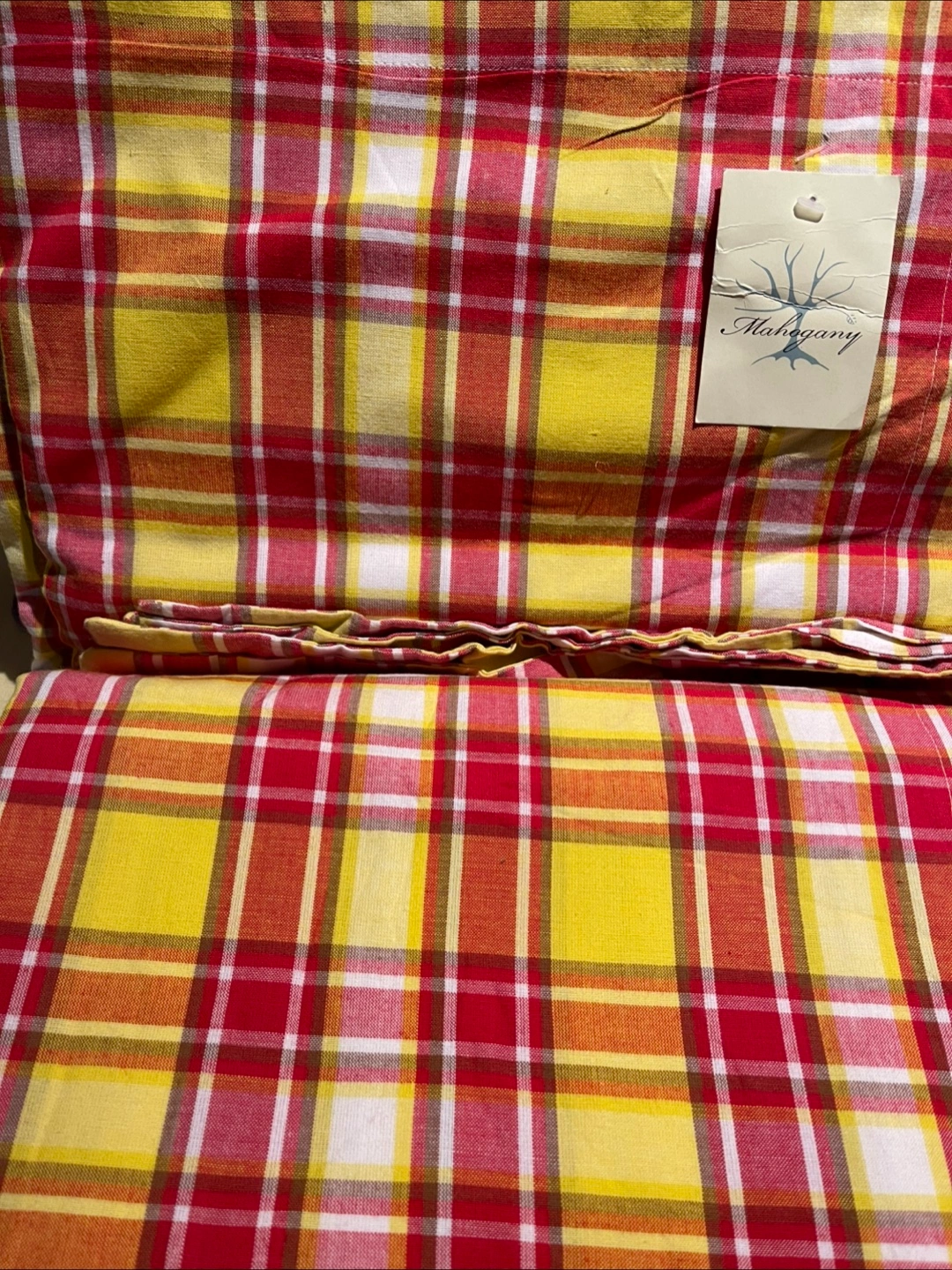 Here's a duvet cover of plaid fabric from Mahogany! It has a lovely yellow, red, and white pattern. Perfect for your room