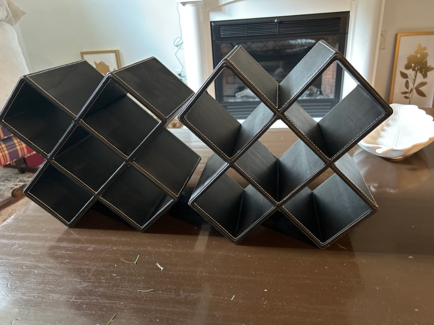 Selling 2 Mainstays faux leather wine holders. It's in great condition and ready for a new home! Originally bought for $19.96. Would look great in your dining room or bar area both for $10