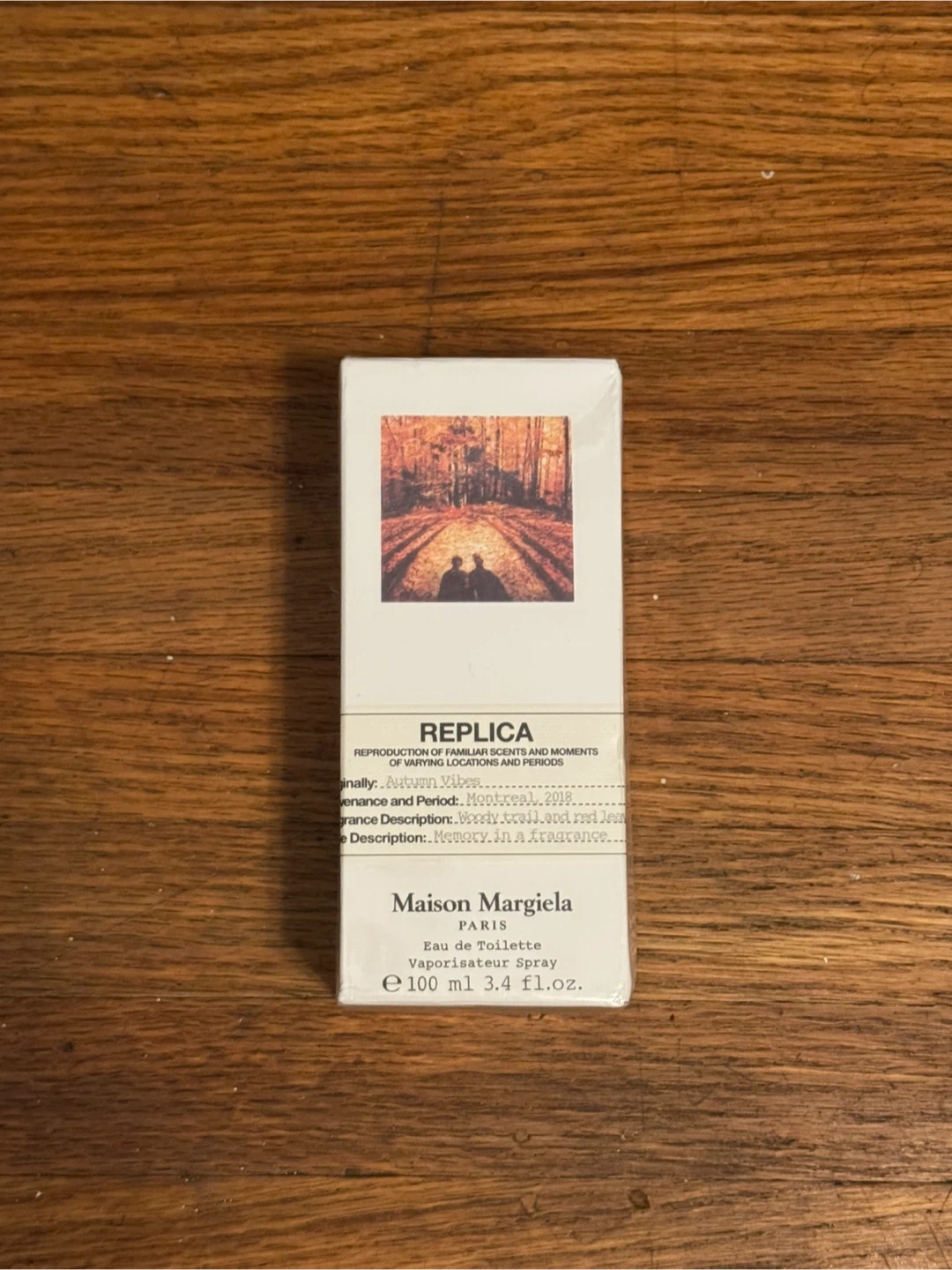 SEALED Brand New Selling a Maison Margiela Autumn Vibes Eau de Toilette, 100ml (3.4 fl.oz). It's a woody aromatic fragrance, perfect for anyone! The fragrance description is "Sentier Boisé et Feuilles Rouges - Woody Trail and Red Leaves".