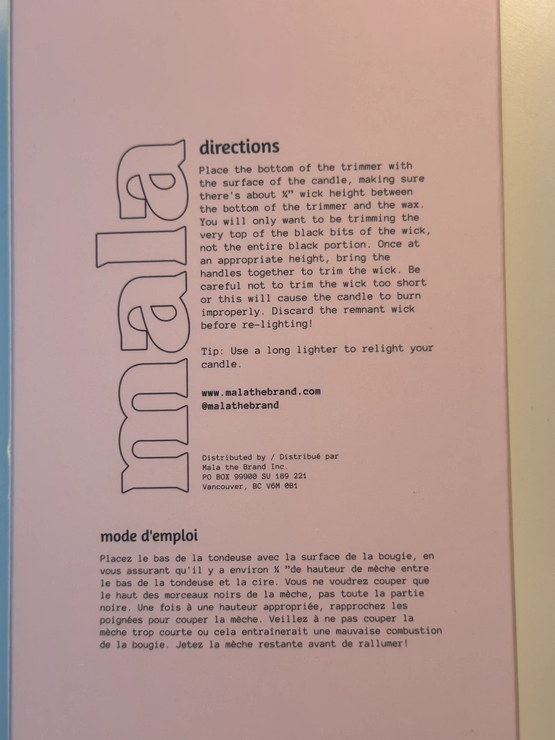 Brand new, never used! Keep your candles burning beautifully with this Mala wick trimmer! It comes with its original box and instructions. The trimmer is in excellent condition and ready to help you maintain your favourite candles. $15 (sells for $28 plus tax online)
