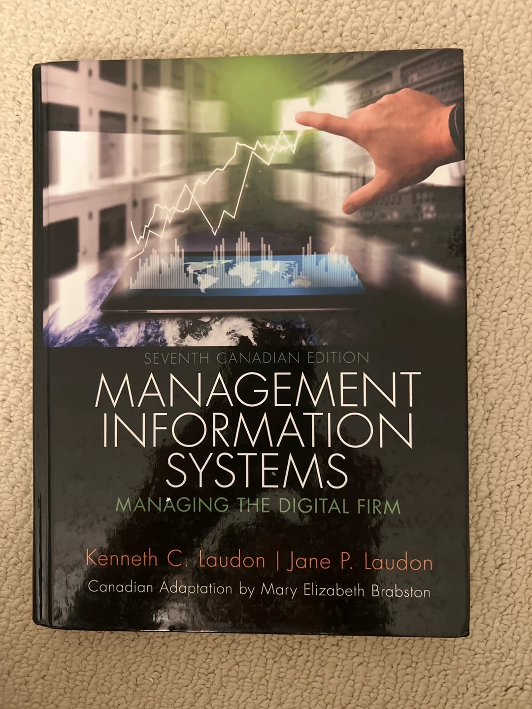 Selling a textbook titled "Management Information Systems: Managing the Digital Firm," Seventh Canadian Edition. It's by Kenneth C. Laudon and Jane P. Laudon, with Canadian adaptation by Mary Elizabeth Brabston