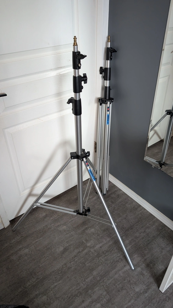 Selling 2x Manfrotto air cushioned light stands. $150 for one, take both for $250. It's in great condition and ready to help you set up your lighting for photos or videos. This stand is designed to provide a smooth and safe lowering action, preventing sudden drops and protecting your equipment. A must-have for any photographer or videographer!