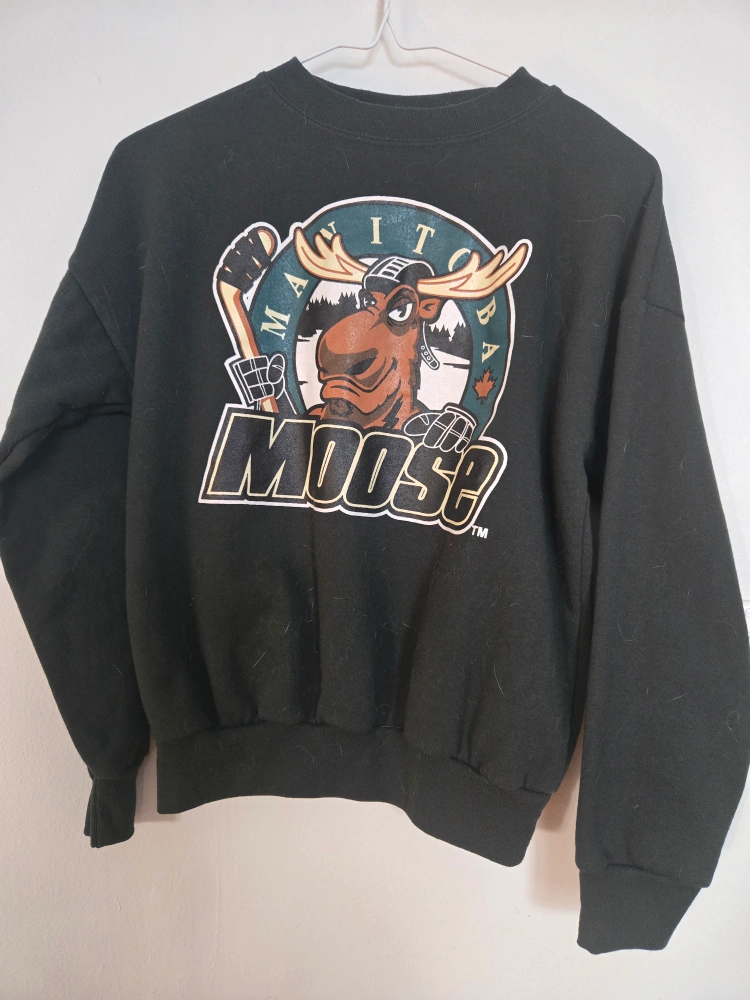 Vintage Cozy Manitoba Moose crewneck sweatshirt! It's black and features the team's logo. Youth fit and perfect for any hockey fan!