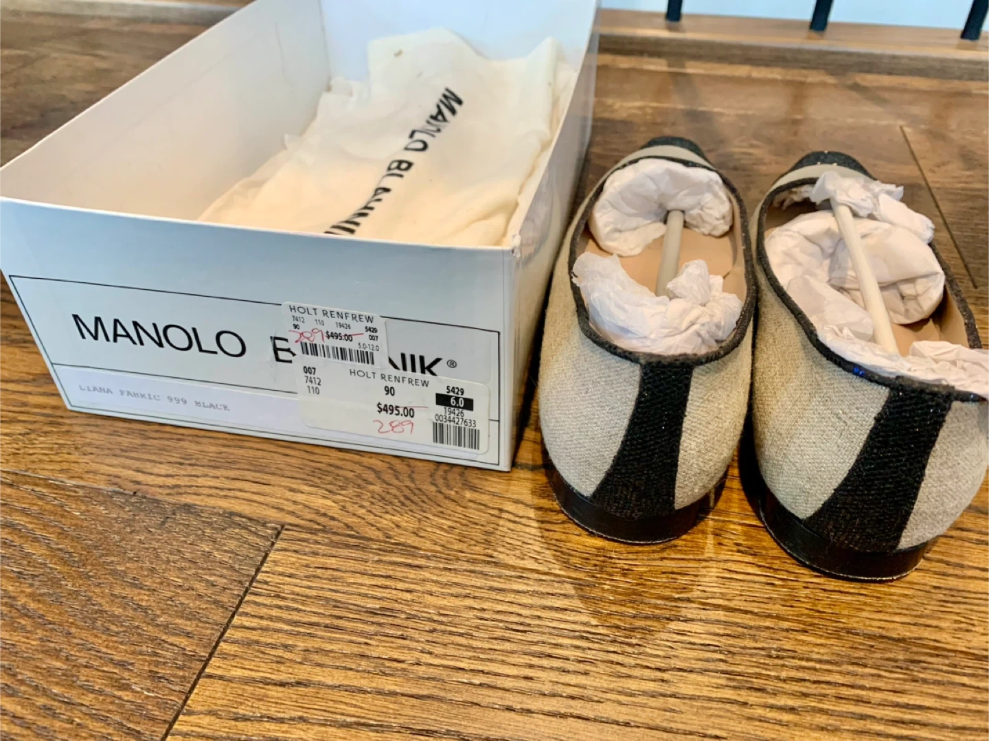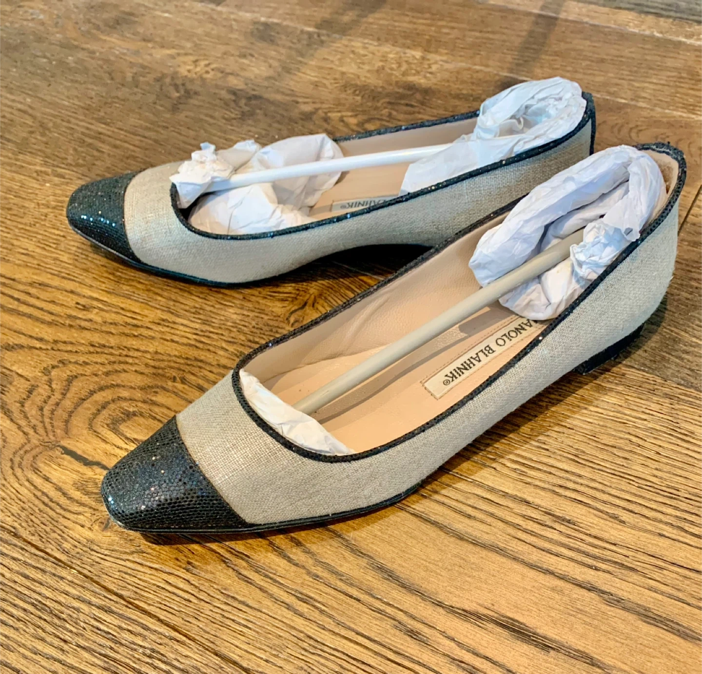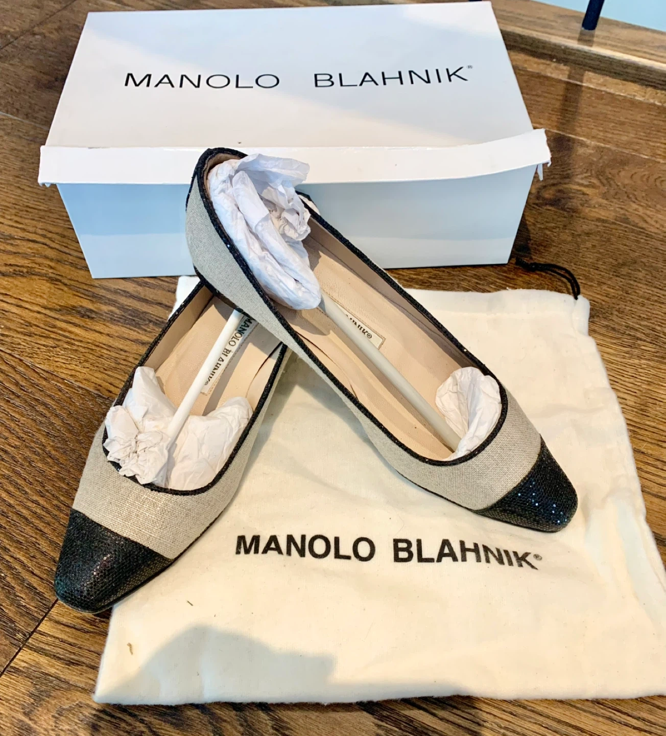 Selling a pair of Manolo Blahnik flats. They are a size 6 and come with the original box. Worn once and they are just a bit too small. My loss! Linen colour. Minimal crystal/sparkle detail on toe. Stunning! Pick up in North Port Coquitlam close to Costco. Contactless porch pick up available. Cash or etransfer.