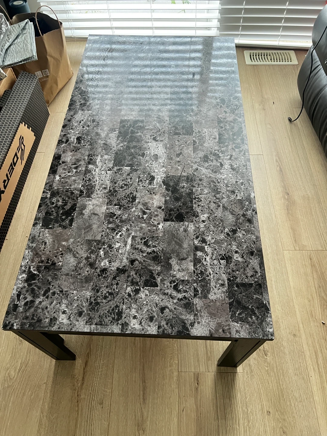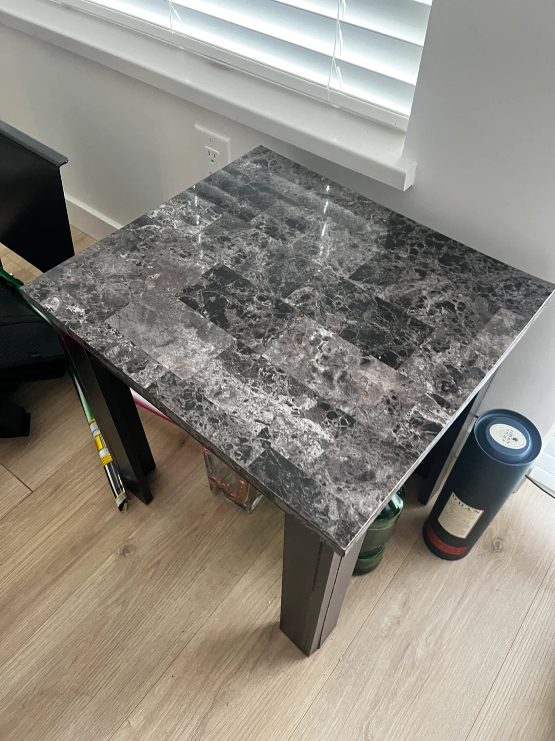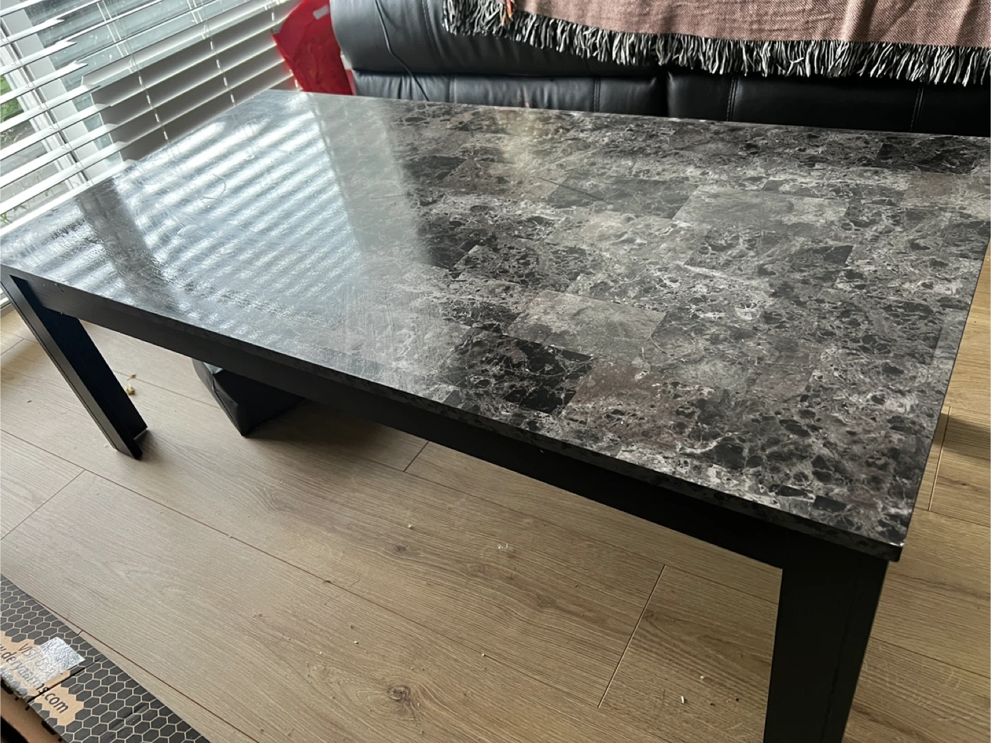 Selling a coffee table with a marble-look top! It's in great condition and would look great in any living room. The table has a dark finish on the legs and trim. It's a solid piece of furniture! Small $25 Big $40 Take both $60
