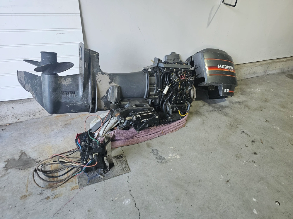 Selling a Mariner 2 stroke 60 outboard motor. It is a Mercury Marine product and ran well when I pulled it of my pontoon boat for a larger motor. Takes 50:1 and has external electric tilt/trim. Comes with fuel tank.