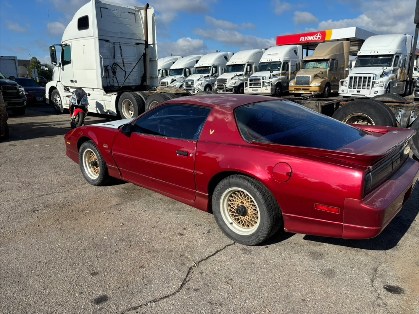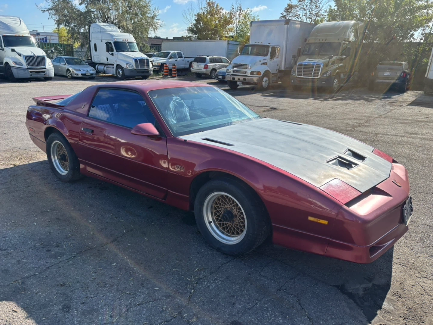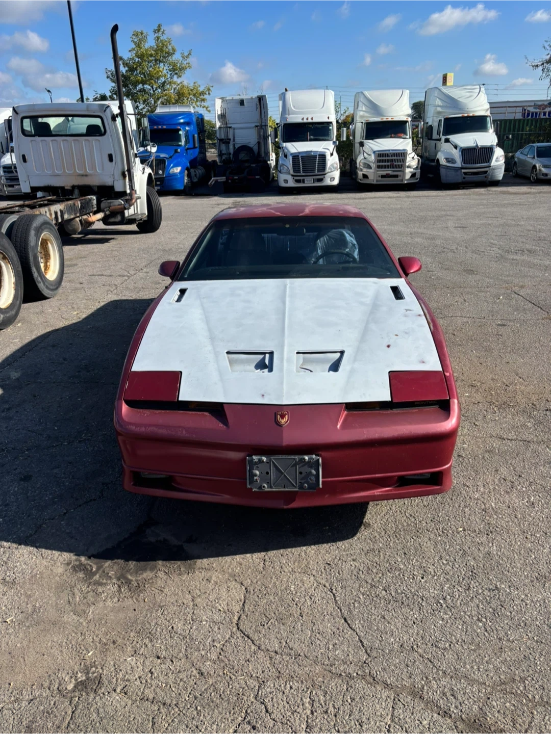 Selling a maroon Pontiac Firebird. It's got a unique look and could be a fun project for someone!
