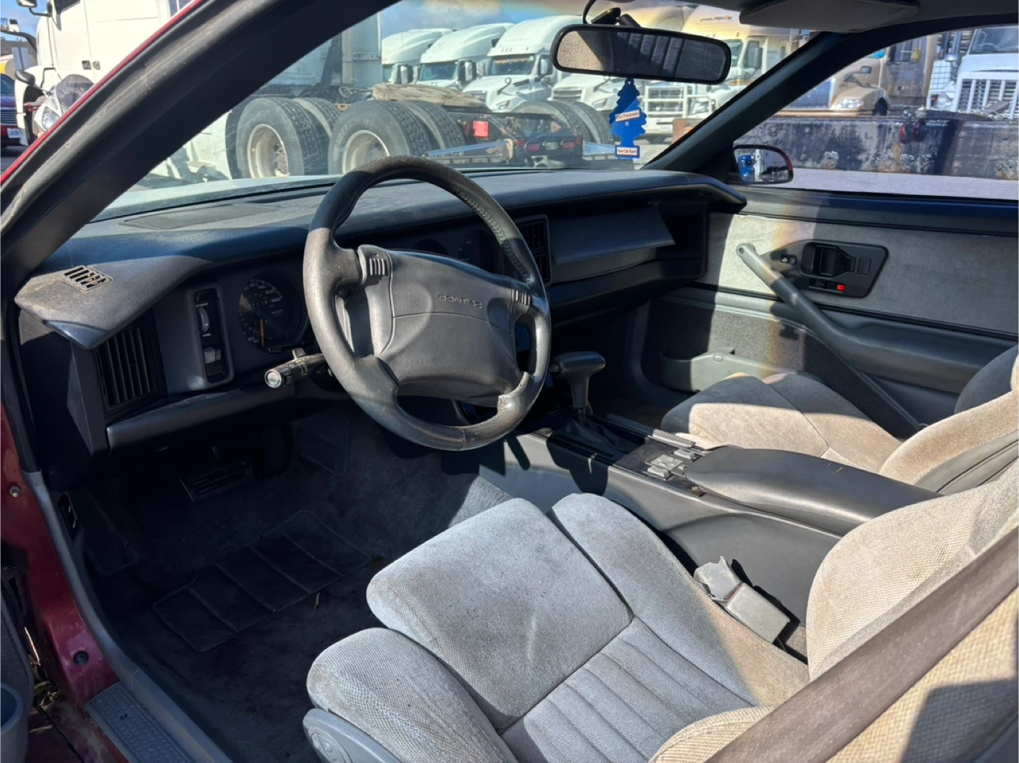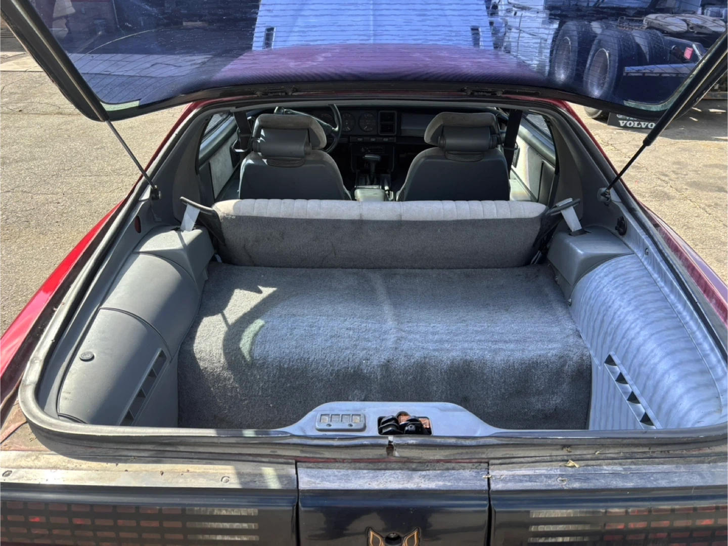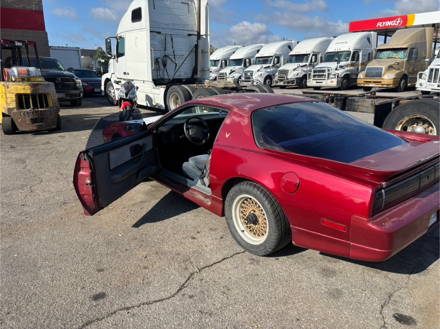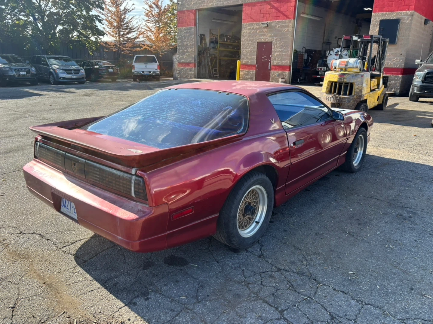 Selling a maroon Pontiac Firebird. It's got a unique look and could be a fun project for someone!