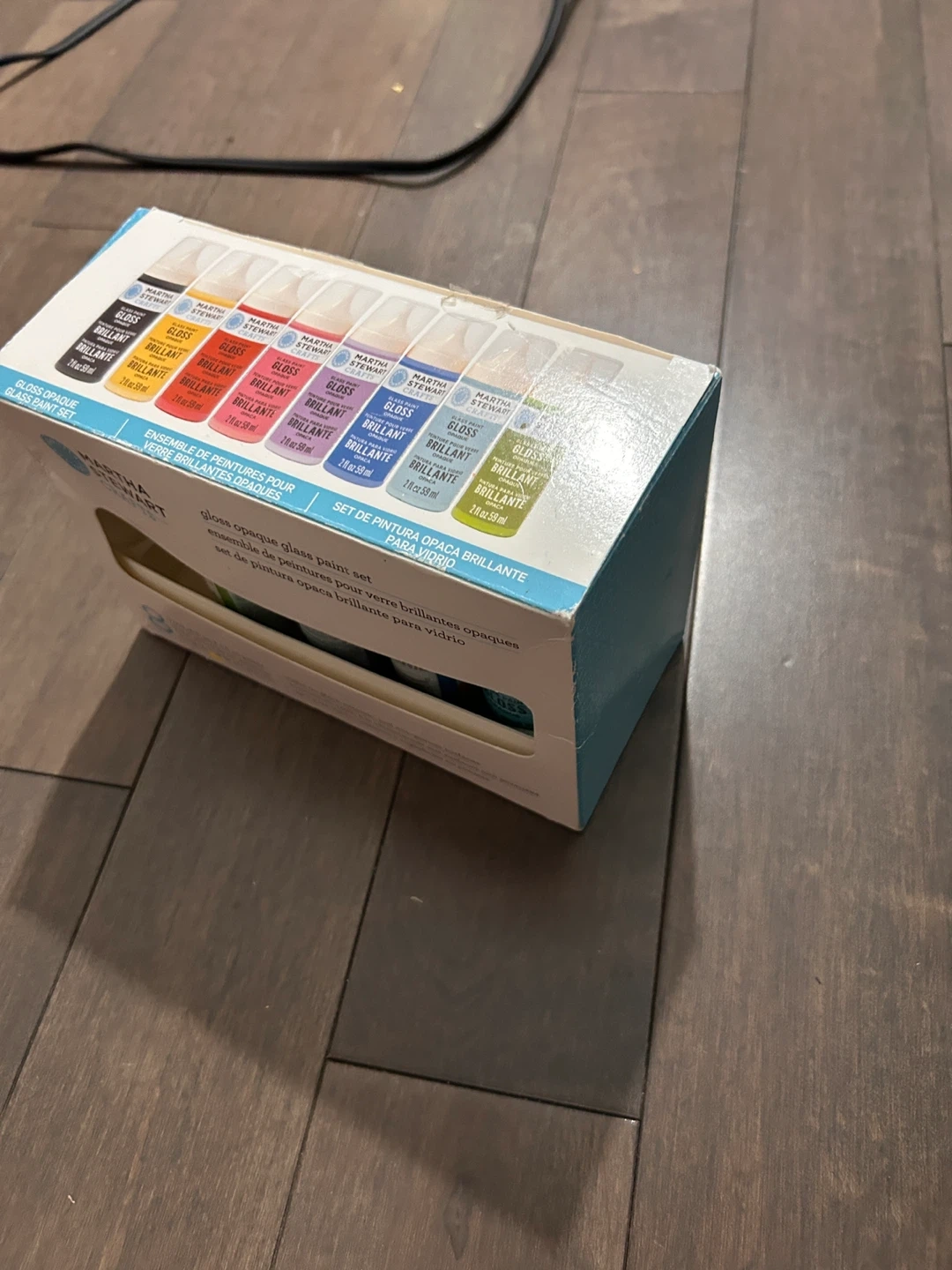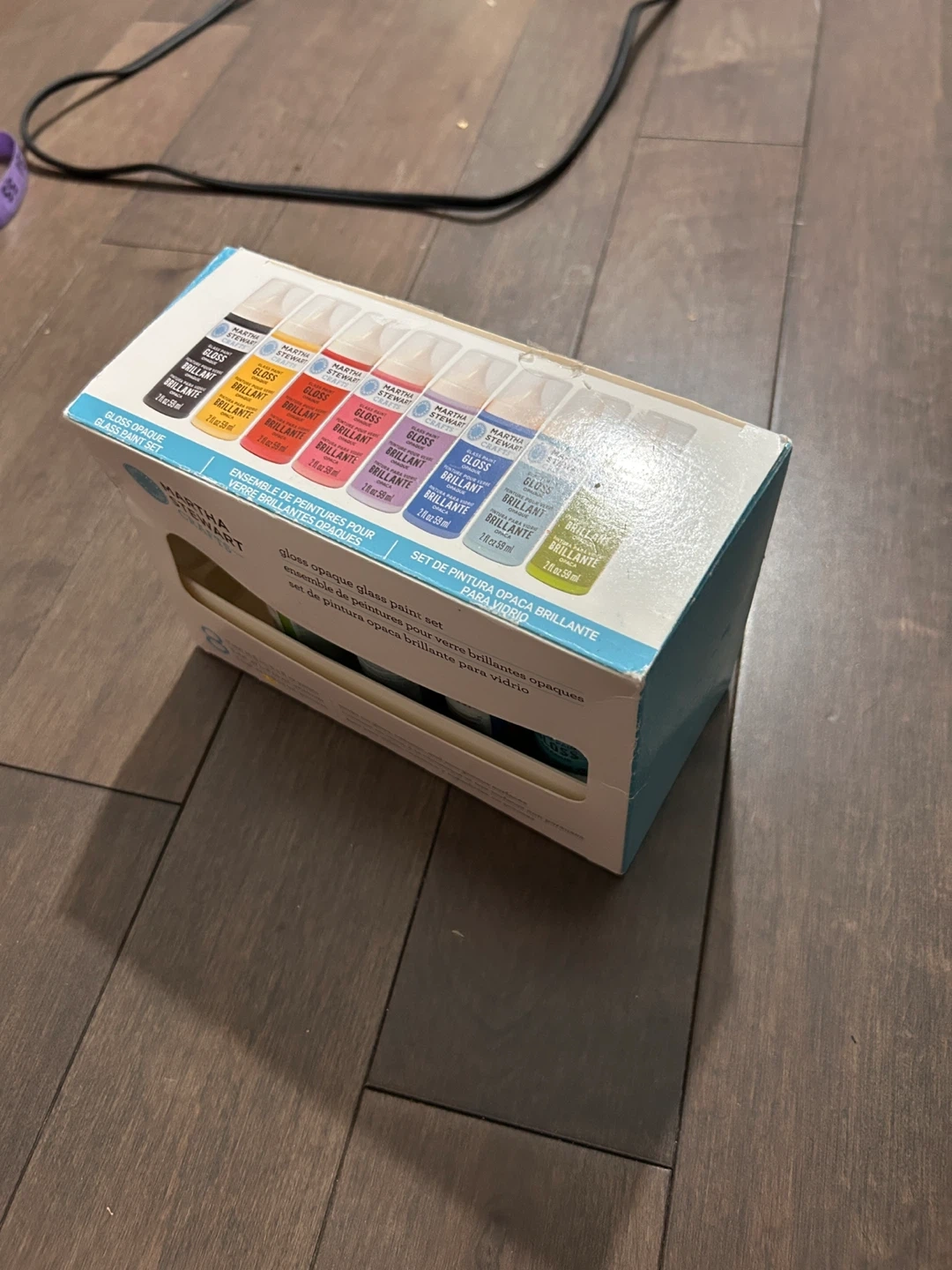 Martha Stewart glass opaque paint set. It's a set of opaque paints for glass. Perfect for your next craft project! Half full or less. Free