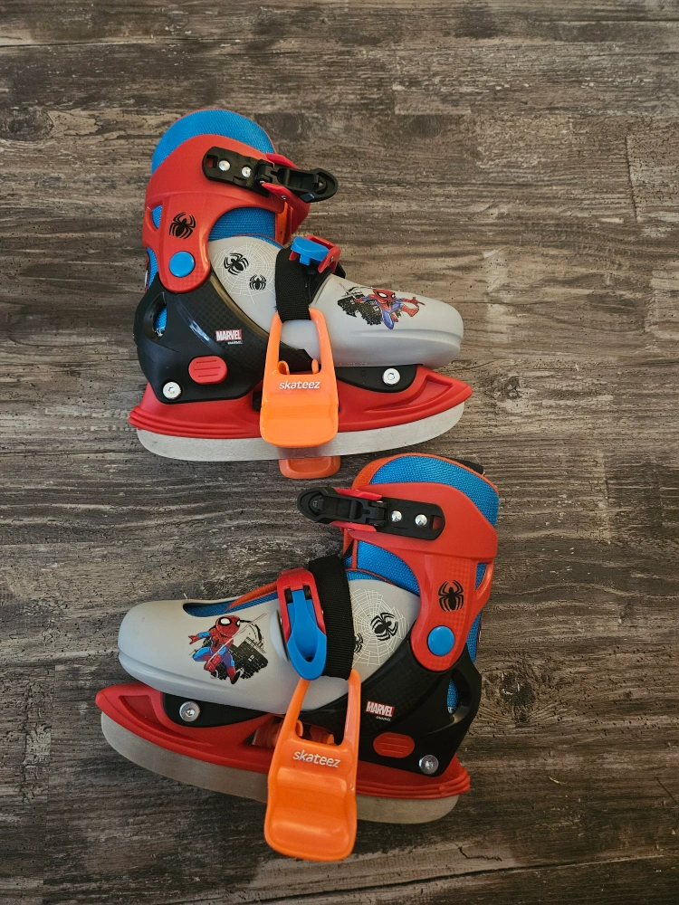 Marvel Spiderman Youth Size 13-14 ice skates Includes Skateez trainers (retail $30-$40 on amazon) Check out my other listings for more breastfeeding and baby/kid supplies!