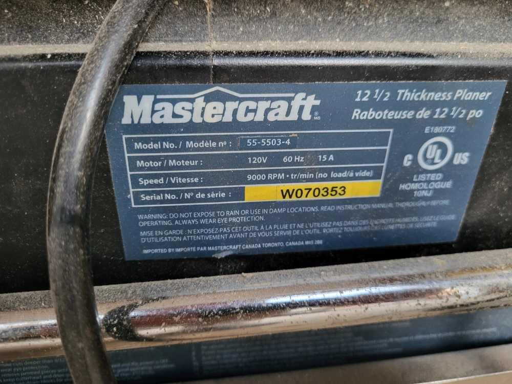 Selling a Mastercraft 12 1/2" Thickness Planer. The model number is 55-5503-4. It's a good running machine,but needs drive chain. got one from princess auto, but not perfect fit and I'm tired of refining it. sold as is.