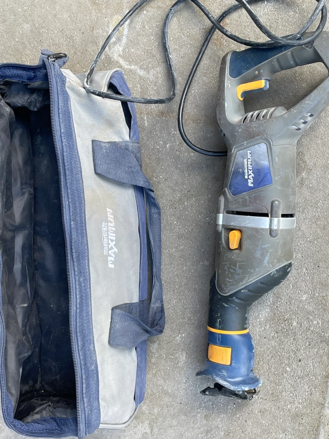 Selling a Mastercraft Maximum reciprocating saw. It comes with its original carrying bag. It has some signs of use, but is still in good working condition!