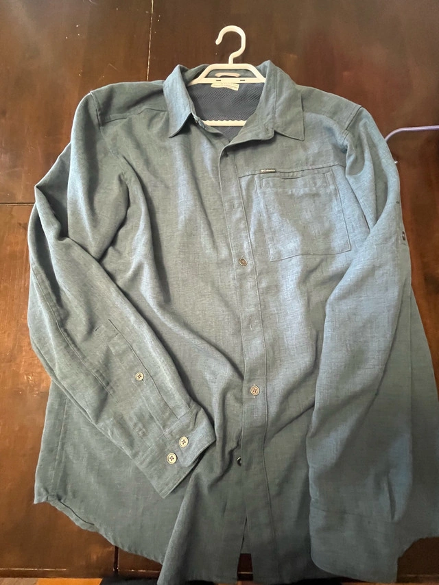 This is a used Columbia blue long sleeve shirt, perfect for outdoor activities or casual wear. It's really good condition and ready for a new home. The shirt is breathable and lightweight, making it ideal for warmer weather. It's stylish and functional, great for everyday wear. * Brand: Columbia * Size: Medium * Colour: Blue * Sleeve Length: Long Sleeve This shirt is looking for a new closet to call home! Please note, if the ad is up, the shirt is still available. Please check out my other ads
