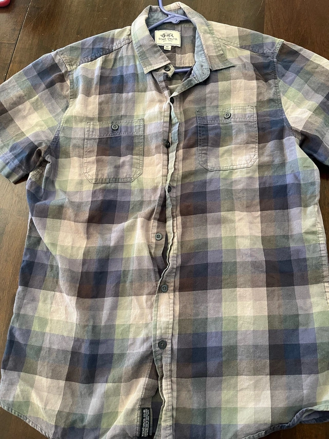 This is a stylish medium-sized Ecko Unltd button-down shirt, perfect for casual wear. The shirt features a unique design and is in good used condition. It's a great addition to any wardrobe, offering both comfort and style. * Size: Medium * Brand: Ecko Unltd * Type: Button-Down