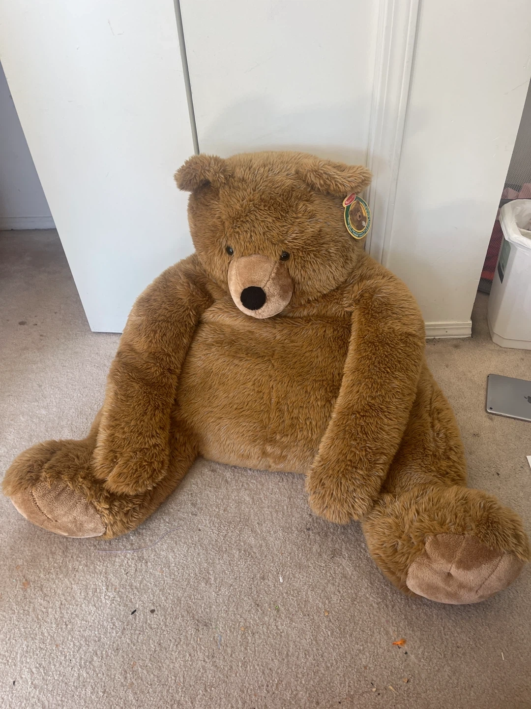 Selling a giant brown teddy bear from Melissa & Doug! It's in great condition and ready for a new home. This cuddly bear is perfect for kids aged 2 and up. It's a super soft and huggable friend! Pet free non smoking home.