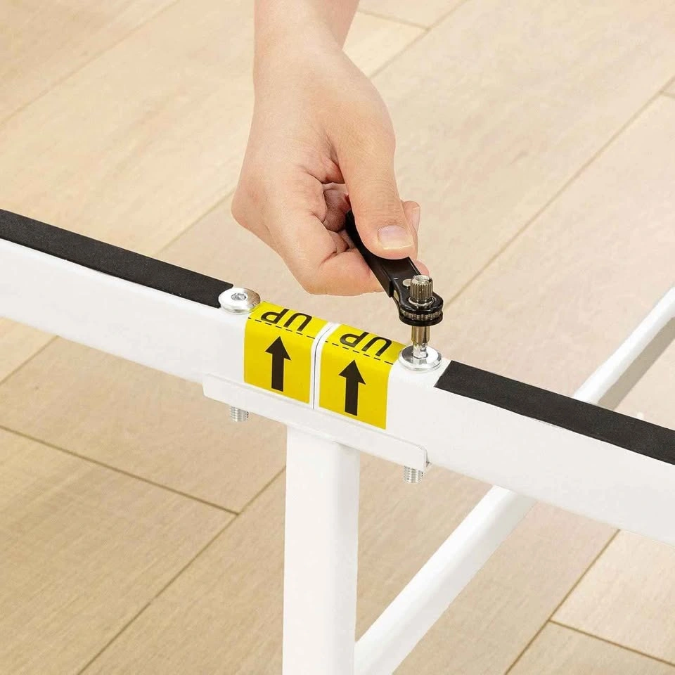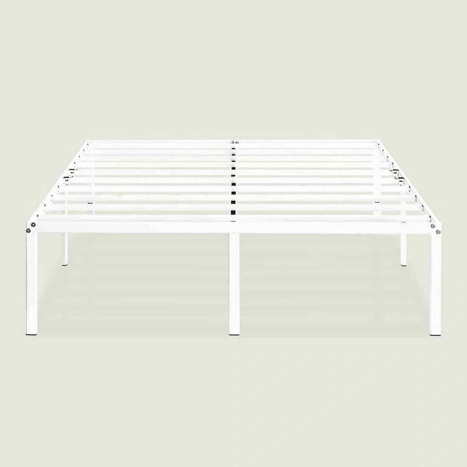 Brand new bed frame in sealed box with all parts for easy assembly. Only the bed frame for sale. Mattress not included. 18 Inch Metal Platform Bed, Heavy Duty Steel Slats, No Box Spring Needed, Easy Assembly, White, King Product details: Brand: Mellow Size: King Style: 18 Inch height Material: Metal Product Dimensions: 2.02L x 1.92W x 0.46H Meters Item Weight : 19.84 kg Ground To Item Distance: 14 Inch Special feature: Squeak Resistant Colour: White Metal platform bed with steel slat support, no box spring needed Durable and noise-free construction made with heavy duty steel and foam padding between the center bar and the slats Additional legs and center bar increase points of contact to the floor for sturdy support High profile provides 14 inches of vertical clearance for convenient under bed storage space Easy assembly in minutes with no additional tools required