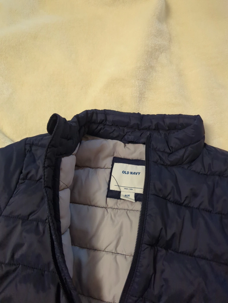 Lightweight puffer jacket. Zipper closure. Long sleeves. Great for layering. Good condition, good for spring, and for 8 years old