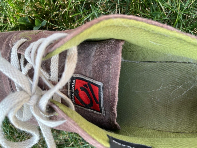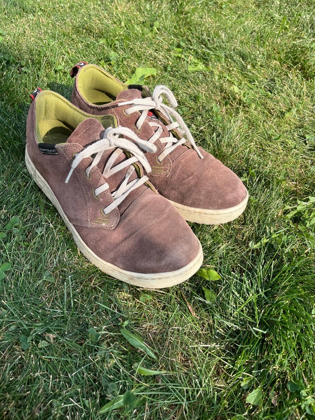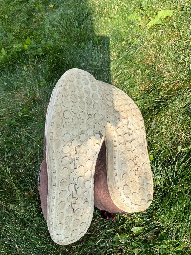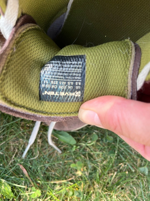 These are a pair of used Five Ten shoes, sized 9.5, perfect for casual wear or light outdoor activities. They feature a durable suede upper and a comfortable fit. * Size: 9.5 US * Brand: Five Ten * Upper Material: Suede * Colour: Brown Looking to add a touch of rugged charm to your shoe collection? These Five Ten kicks are ready for a new adventure! Don't miss out—if the ad is up, they're still available!