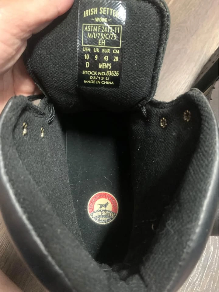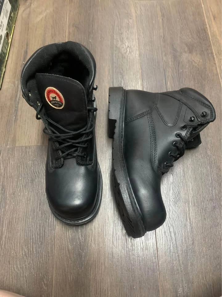 Never used, been in storage. Price is firm. All black, size 10 men's. Slip and oil resistant. Water resistant. Pick up in St Boniface. Shaft height approximately 6.5 inches. Weight: 37.00 oz. Irish Setter steel toe protection in an outdoor work boot featuring full grain leather and comfortable Endurance Cross Wire sole. Electrical hazard meets ASTM Standard. Oil resistance, water resistant. Pick up /meet up only St boniface area