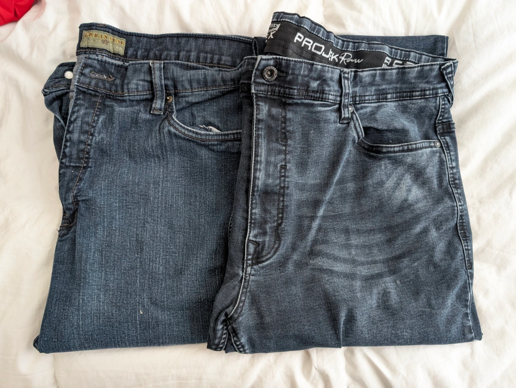 Two pairs of gently used jeans. one size 40 waist x 33. The other size 42 waist. Both straight leg