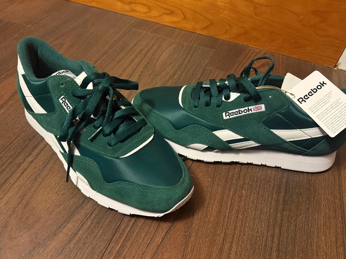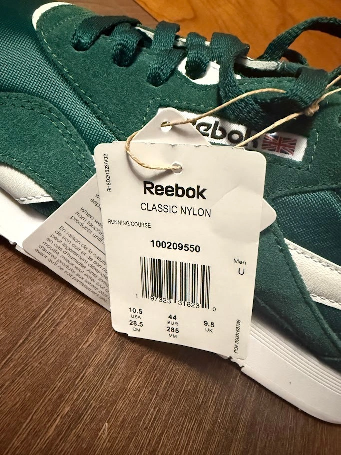 Mens size 10.5 Green Reebok Classic Nylon Shoes Brand new with tags never worn. Priced at $80.00 (no box) Comparable at 95.00 https://reebok.ca/products/reebok-footwear-men-classic-nylon-shoes-collegiate-green-collegiate-gr?variant=45928649130214&country=CA¤cy=CAD&utm_medium=product_sync&utm_source=google&utm_content=sag_organic&utm_campaign=sag_organic&gad_source=1&gad_campaignid=18942944634&gbraid=0AAAAAo9c69NXYK7_MB_UqDw-LJQyHpuZZ&gclid=Cj0KCQjw9JLHBhC-ARIsAK4PhcpRkKbXBbpU3CK8b6y0pTXTrKrfAb0TZZ8czDDi9Cq-0YMMWcF7o3QaAgwgEALw_wcB