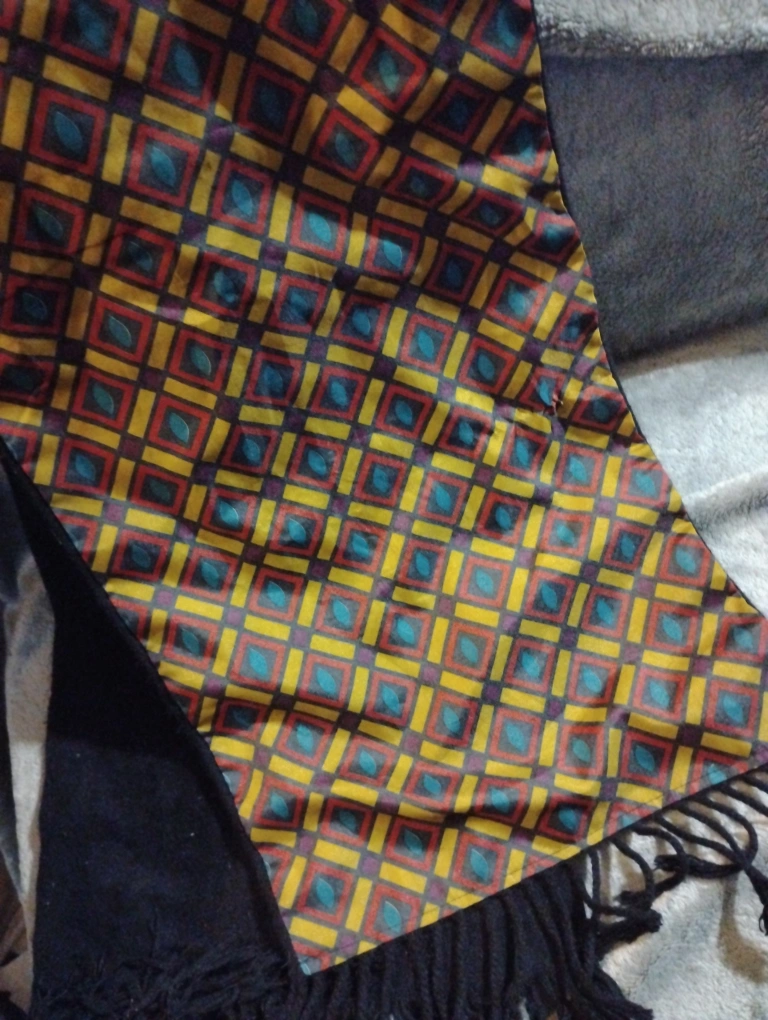 this is a very sophisticated print men's silk scarf. the Riverside has a black fleece it's very cozy for winter but yet very tailored and sophisticated print.