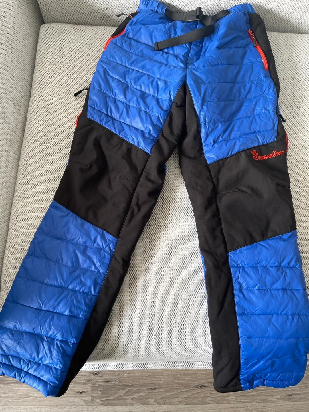 Men’s insulated ski pants. Blue and black colour Features an adjustable waistband and zippered pockets. Excellent for cold weather activities. Length 160cm Waist maximum is 34 inch