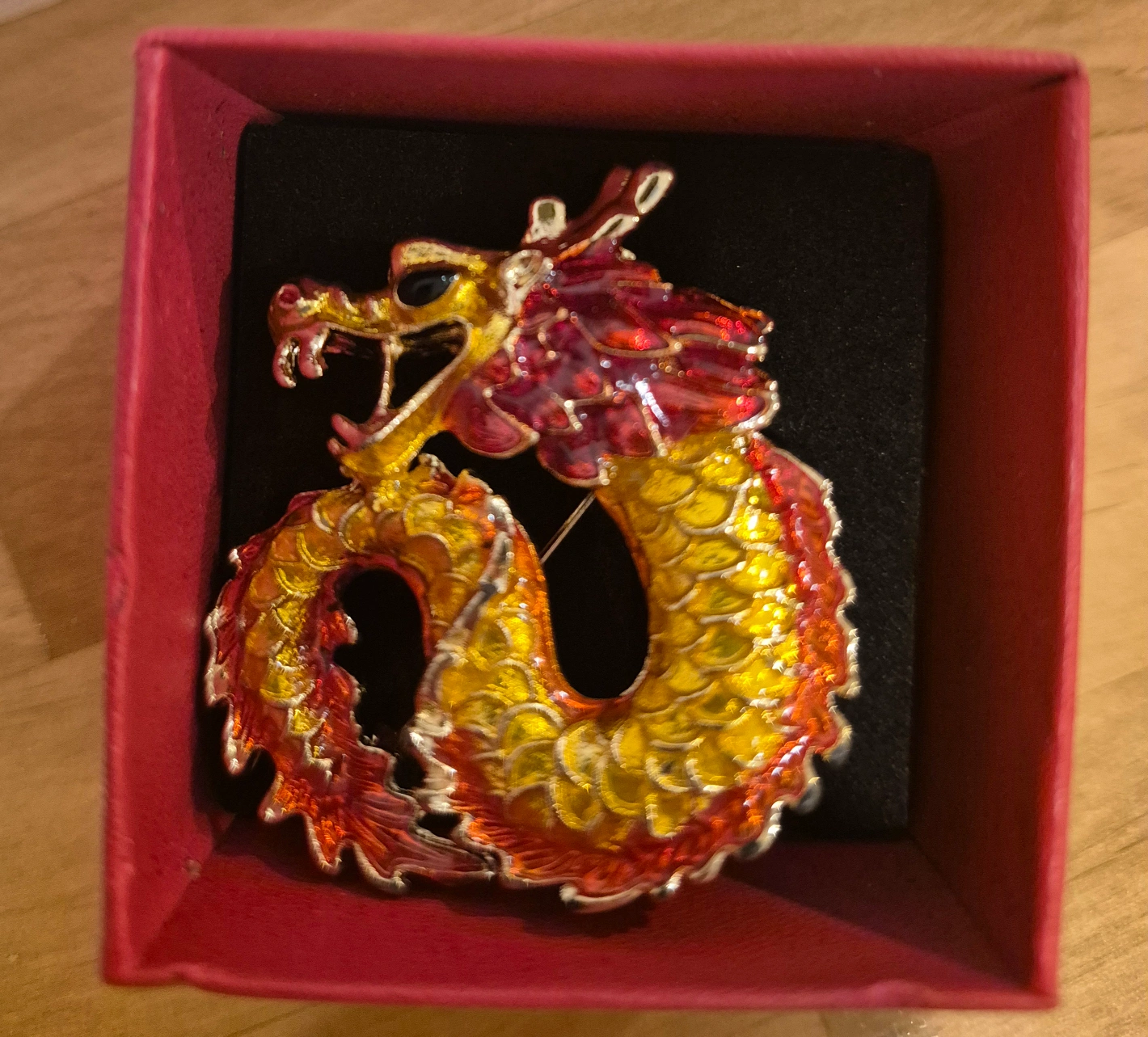 This dragon brooch pin features a detailed dragon design in vibrant red and gold colours. Easy to Wear:Each brooch pins with metalclasp in the back side that keeps the pins securely in place to prevent lose of the pins. Easy to Wear with metalclasp in the back side that keeps the pins securely in place. Perfect for adding a touch of flair to your outfit or as a gift for a dragon enthusiast.