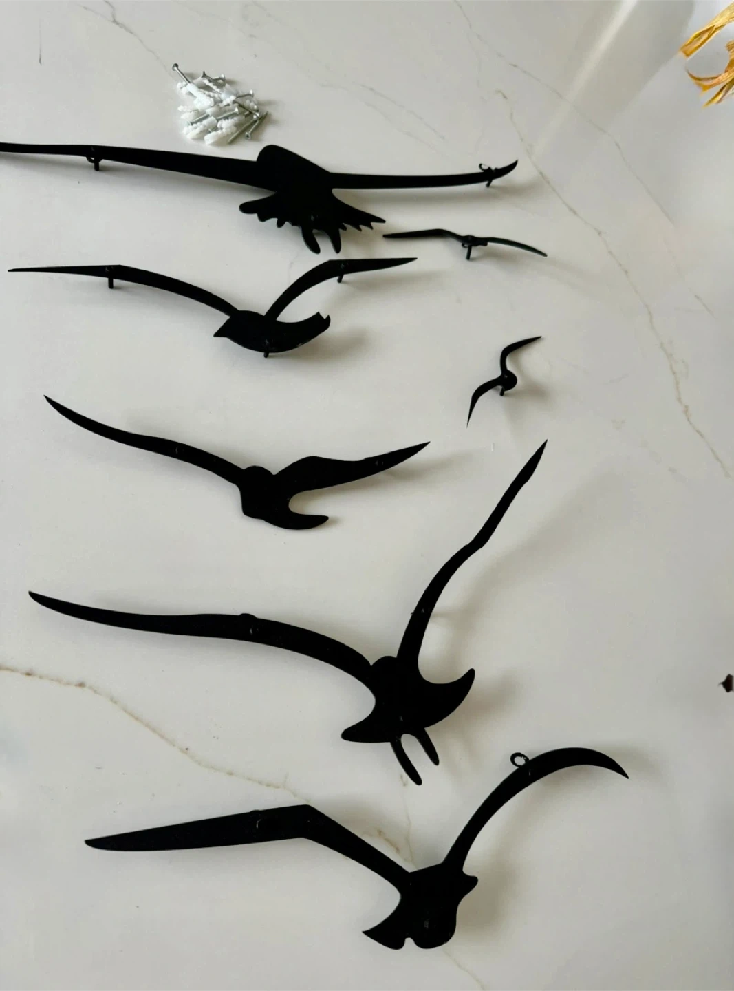 Add a touch of coastal charm to your home with this set of 7 metal seagull wall decorations! These stylish black birds are perfect for creating a unique and eye-catching display in any room. They're easy to hang and will bring a whimsical touch to your space